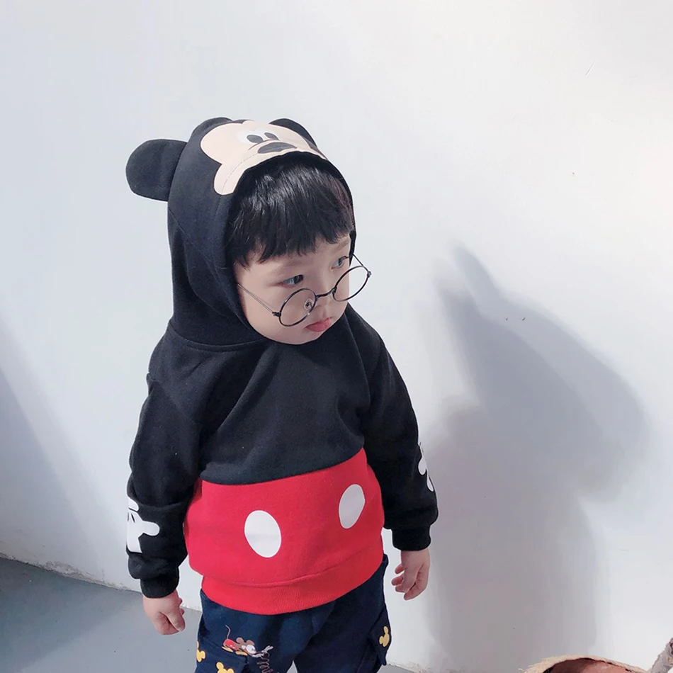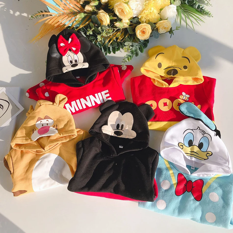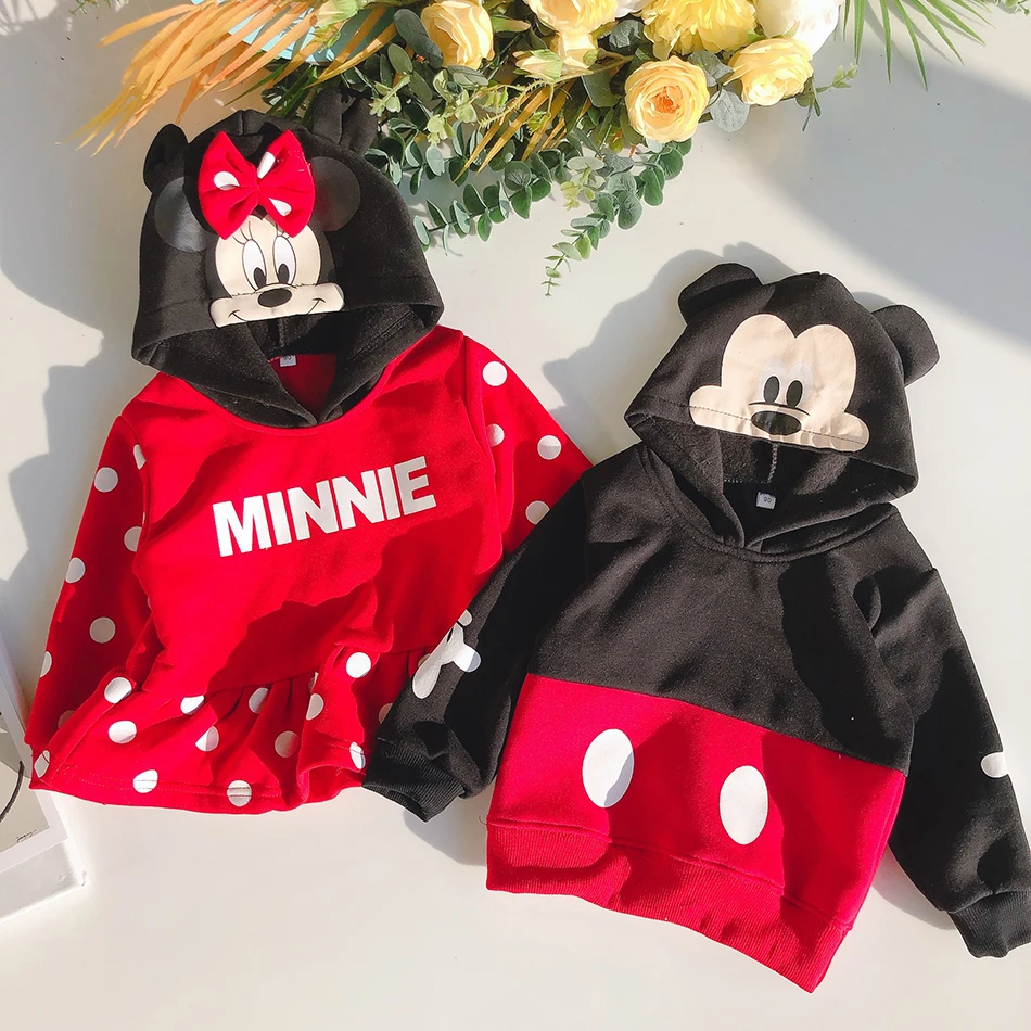 Детская толстовка с капюшоном с Микки и Минни, детская теплая зимняя одежда, модный костюм для маленьких мальчиков и девочек