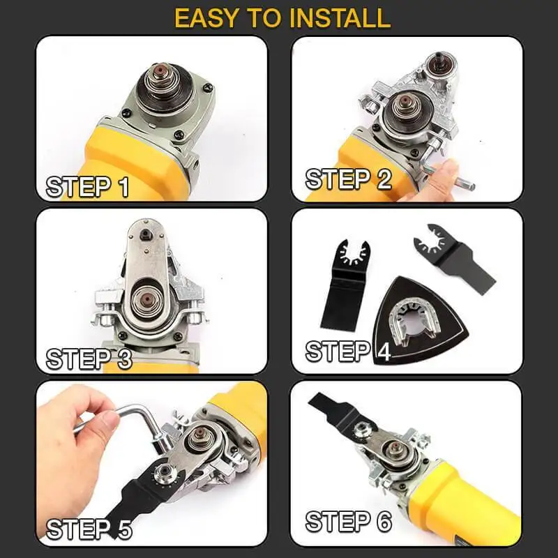 Может бытьБольше, чем просто угловая шлифовальная машина, Он может быть преобразован в резак и шлифовальный станок, способный открывать, шлифовать, полировать и пилить, все в одном.