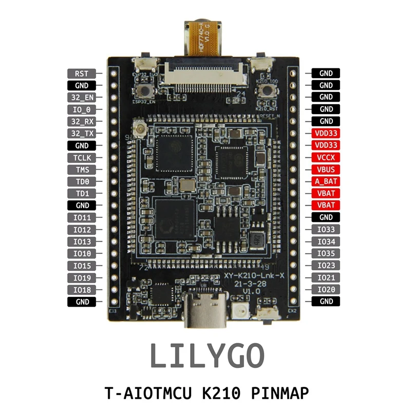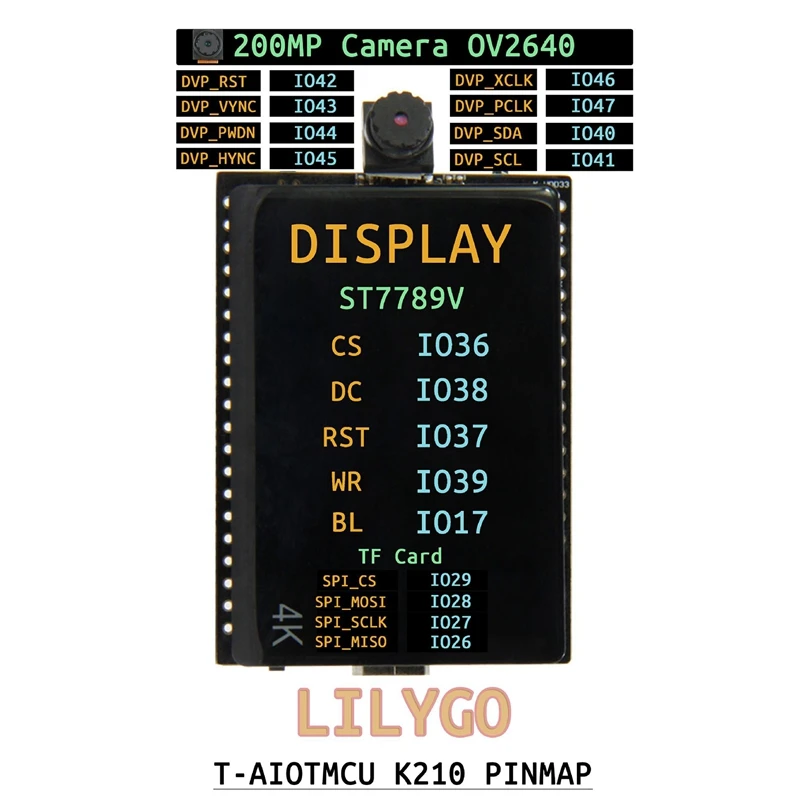 1. It is suitable for the extended function products designed and manufactured by the LILYGO AIOT module. The AIOT module is an integrated module based on the K210 AI chip and ESP32 IOT chip plus the PMU chip on the module,
