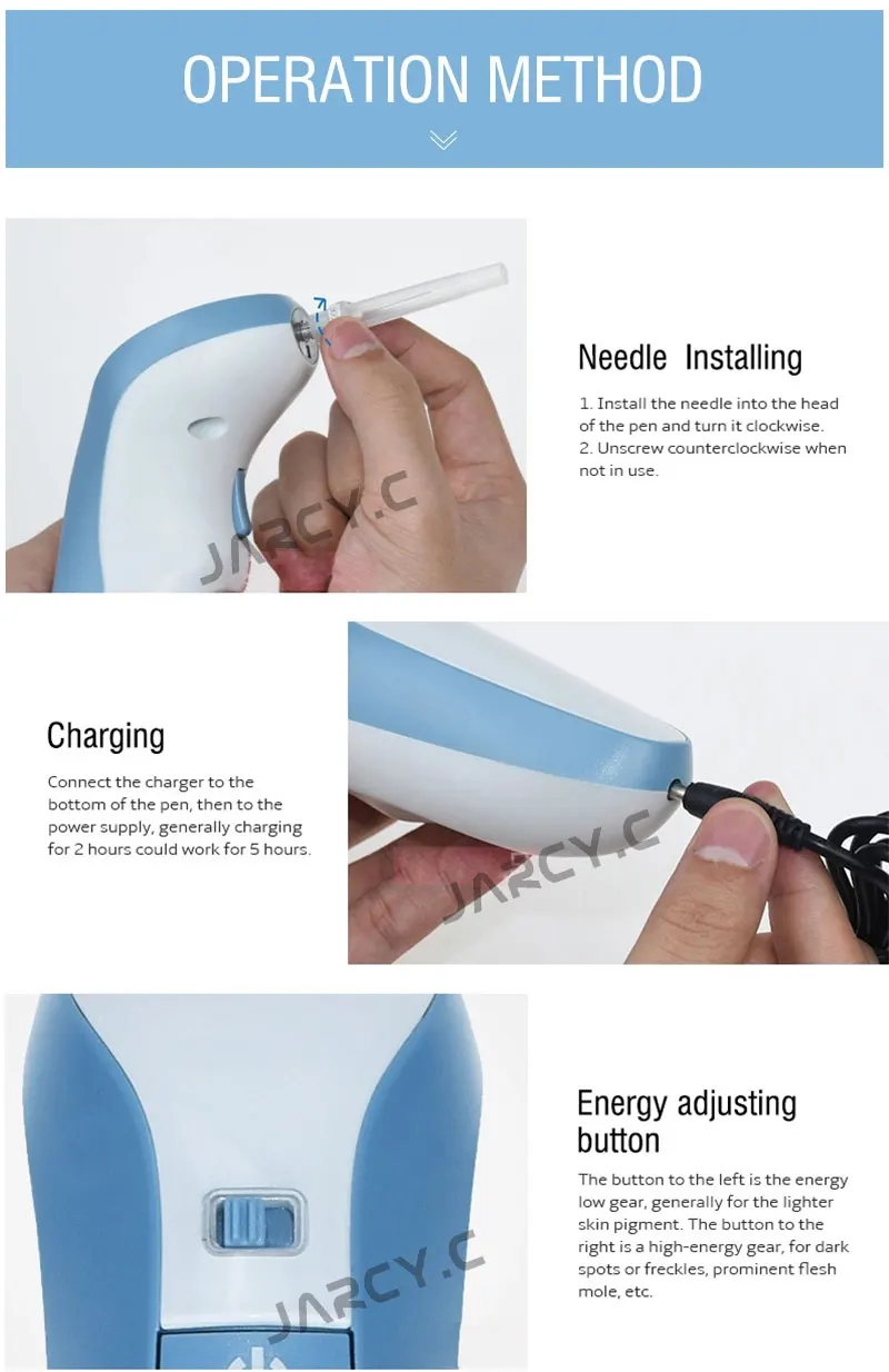 Эта ручка для удаления пятен используется с использованием высокотехнологичных, электрических ионных карбонатных функций, что позволяет удалять пятна, не повреждая нормальную кожу, не Кровотечение и небольшие боли.