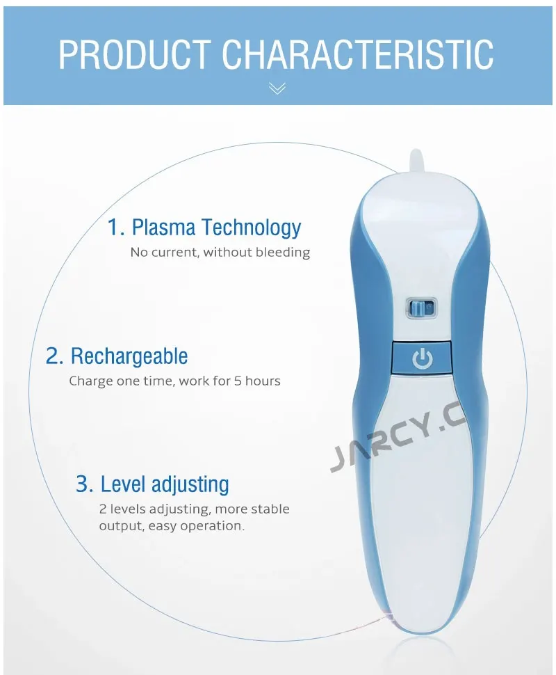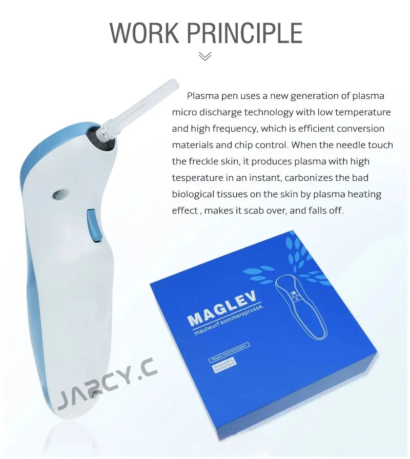Как углекислый газ (CO2) лазерная машина красоты, он использует новое поколение плазменной микро-технологии разряда с низкой температурой и высокой частотой, это эффективный материал преобразования мощности и чип управления. Когда игла прикасается к веснушке, коже, она производит плазму с высокой температурой 2000 °C, затем она может твердосплавить веснушки, удаляя их. Когда игла коснется веснушки, она будет производить небольшое пламя, которое отличается от общего пламени. Микро-сосуды быстро затвердевают без кровотечения во время лечения. Затем он образует углеродные частицы, защищая кожу от инфекции. Примерно через 1 неделю чеснок прольется без шрамов.