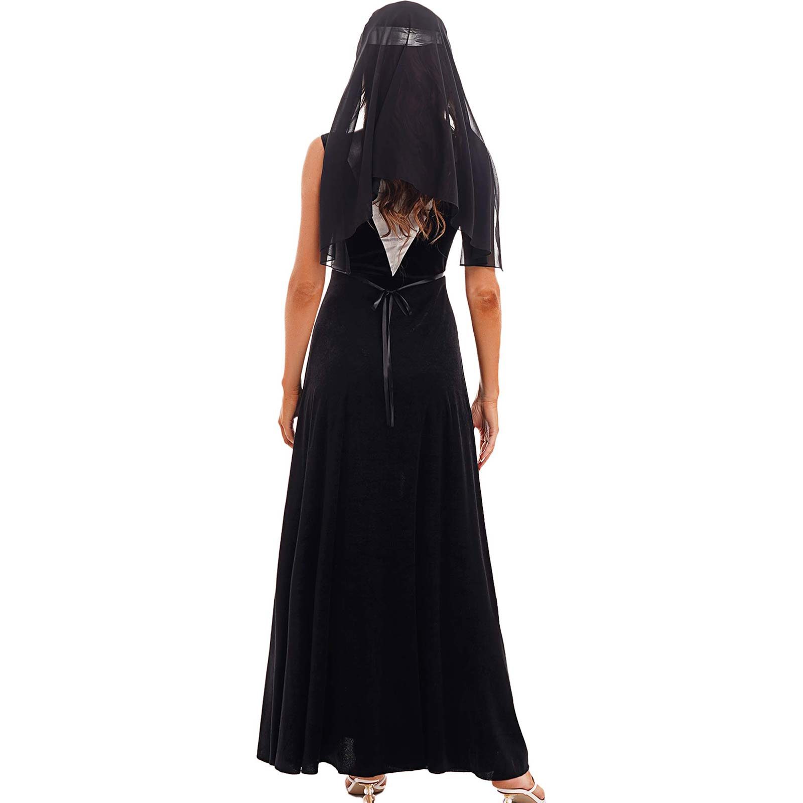 Женский карнавальный костюм Nun, наряд на Хэллоуин, платье с высоким воротом и расклешенными рукавами, головной платок.