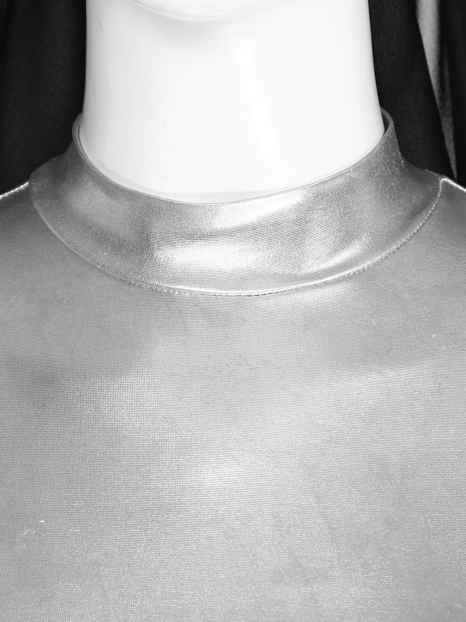 Женское блестящее платье-мини из лакированной кожи с воротником-шарфом на молнии.