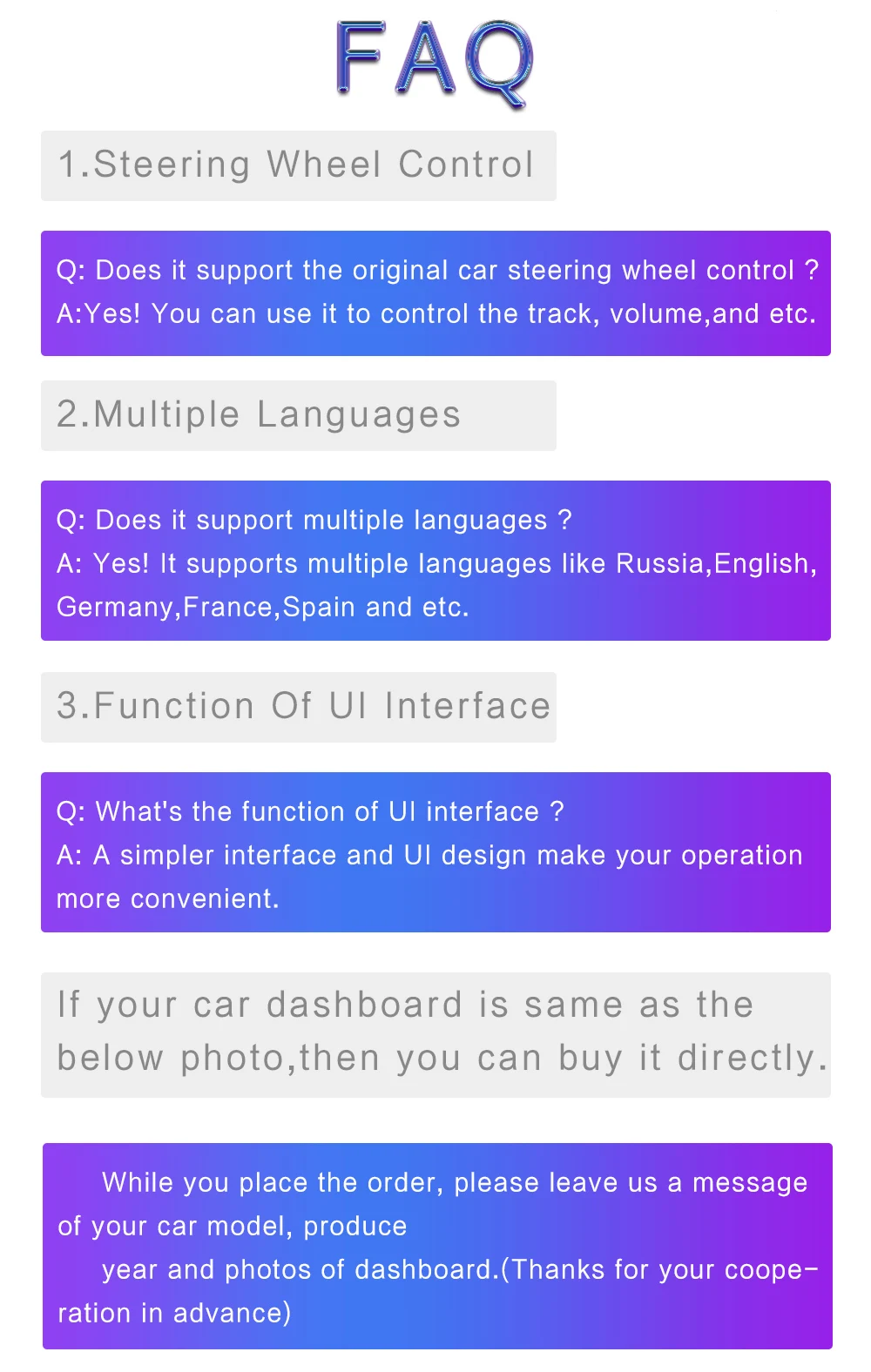При размещении заказа, пожалуйста, оставьте нам сообщение с указанием модели вашего автомобиля, год выпуска и фотографии приборной панели. (заранее спасибо за сотрудничество)