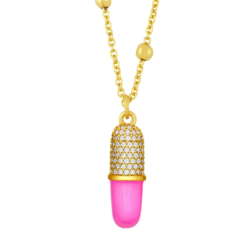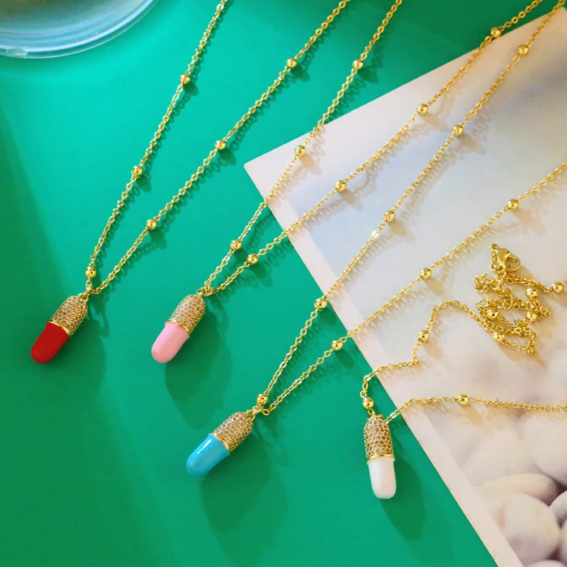 Капсула Чилл таблетки циркон позолоченные DIY Шарм ожерелье капли масла эмаль ледяная таблетка