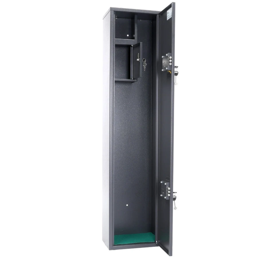 | language_detail+ | Предназначен для хранения огнестрельного оружия Сейф соответствуют требованиям ст 59 Постановления правительства РФ №814 от 21 июля 1998 года «О мерах по регулированию гражданского и служебного оружия и патронов к нему на территории РФ» Комплектуется двумя ключевыми замками Наличие анкерных отверстий для крепления сейфа к стене Максимальная высота ствола 1268 мм Техническое описание Размеры внешние, мм (ВхШхГ): 1300x300x200 Размеры внутренние, мм (ВхШхГ): 1278x298x165 Вес, кг: 19 Объём, л: 63/4 Тип замка: Два ключевых Патронное отделение (трейзер): 220/170/105 Количество стволов: 3 Тип покрытия: Порошковое |