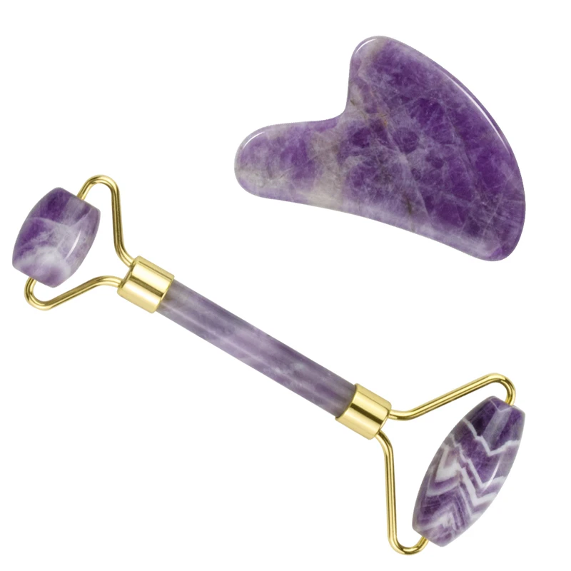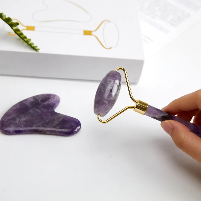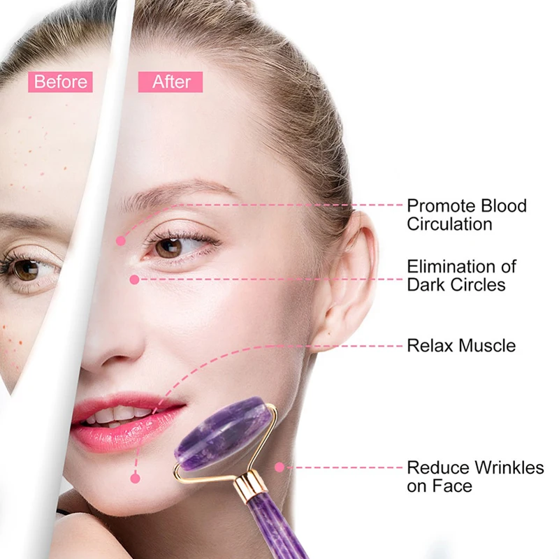 Аметист нефритовый ролик-массажер для лица Натуральный подъемник Gua Sha скребок для доски Guache камень для похудения Тонкий подбородок, шея красота уход за кожей