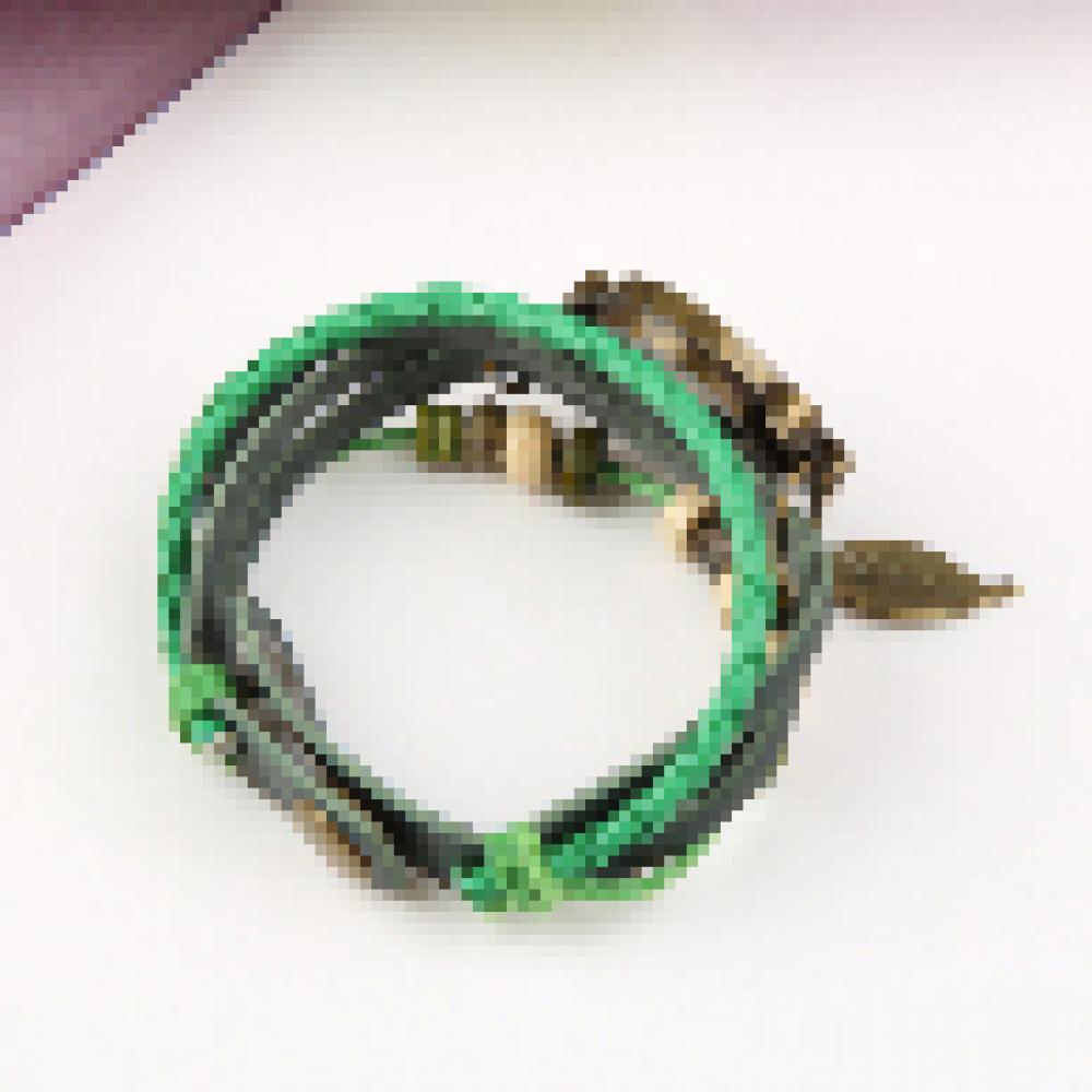 Характеристики: Кулон в форме листика дерева, Плетеный ремешок.