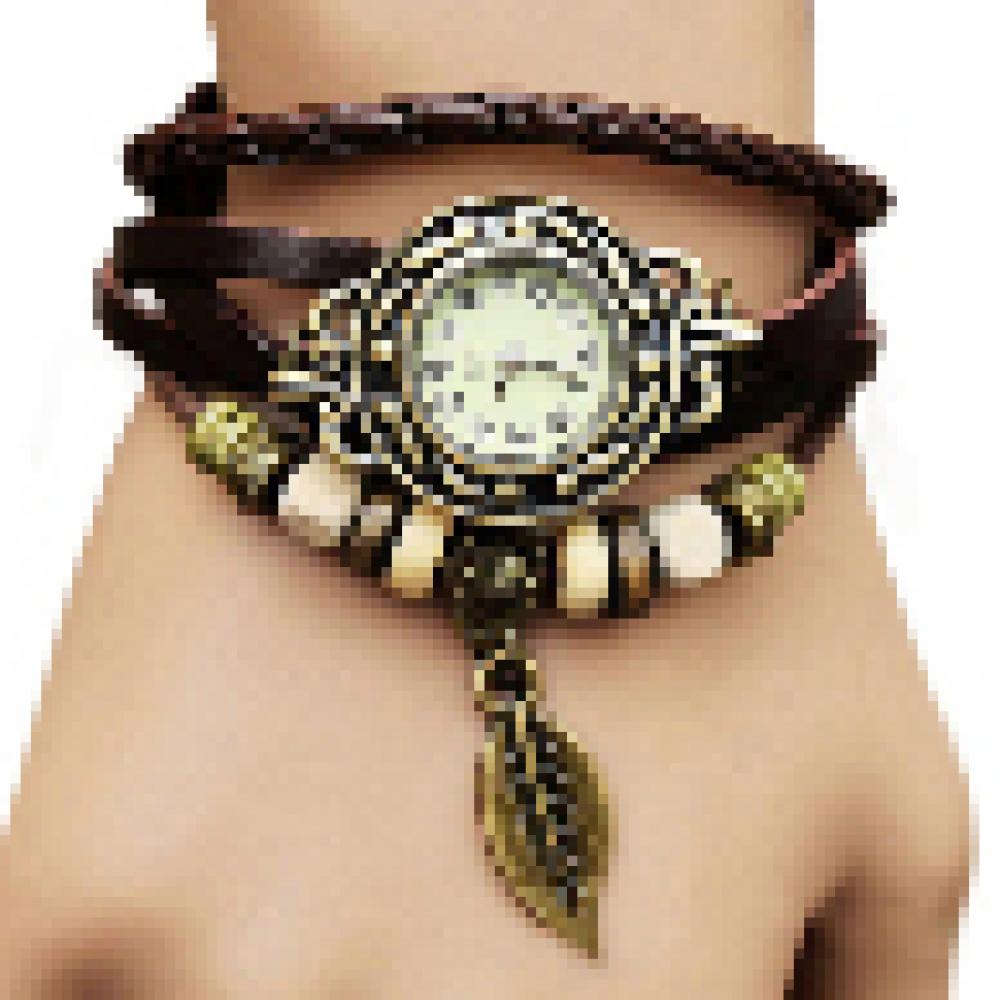 Ретро браслет кварцевые часы женские кожаный браслет Дерево лист украшения Аналоговые кварцевые наручные часы женские часы montre femme