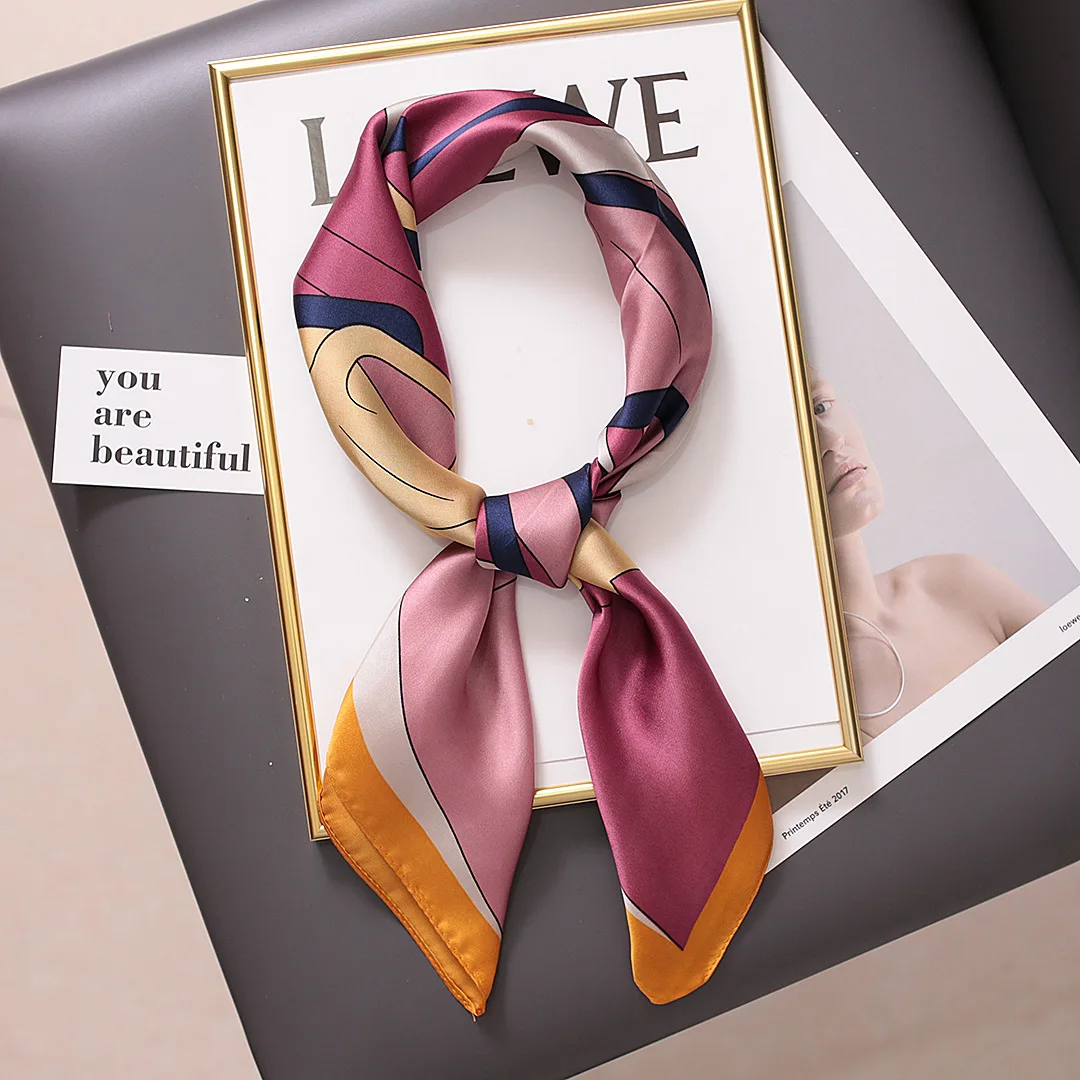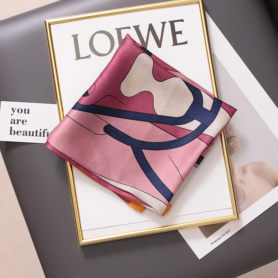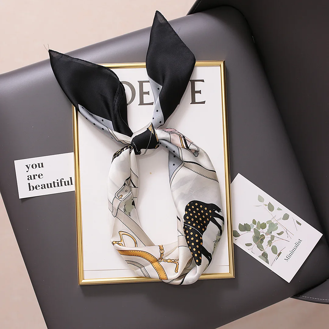 2021 Шелковый квадратный шарф, Женская атласная бандана, Сумка с принтом, шарфы, повязка на голову, модная дамская шаль для волос и накидка, женский шейный платок, хиджаб
