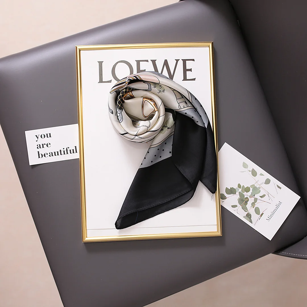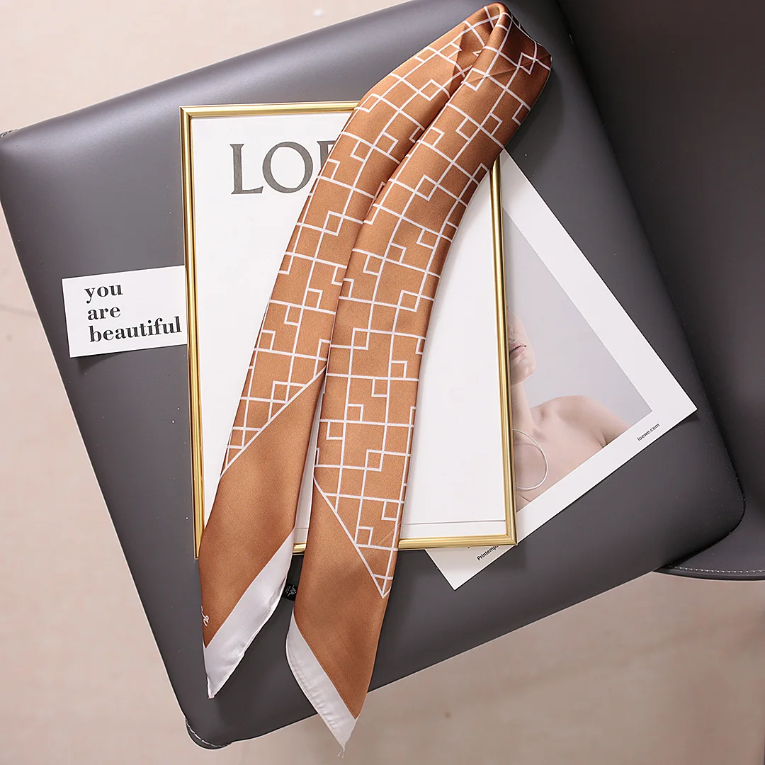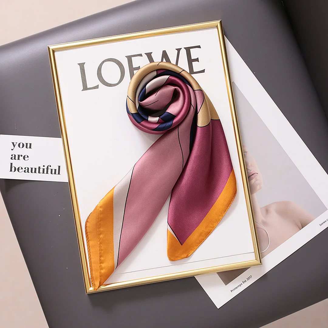 2021 Шелковый квадратный шарф, Женская атласная бандана, Сумка с принтом, шарфы, повязка на голову, модная дамская шаль для волос и накидка, женский шейный платок, хиджаб