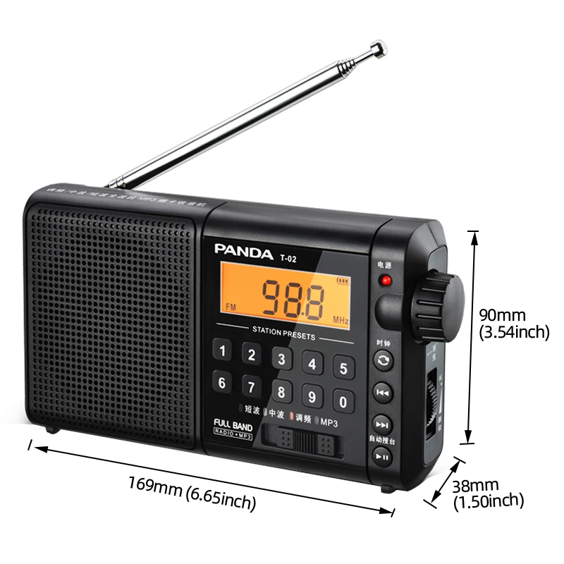 Горячая панда радио T-02 портативный Полный диапазон FM/AM/SW радио-чувствительный SDR приемник звук ясная батарея аккумуляторная радио для пожилых людей, взрослых прослушивания музыки, новости, погода, спичечный домашний fm-радио Настольный слепой пожилой старомодный полупроводниковый Ретро радиовещание