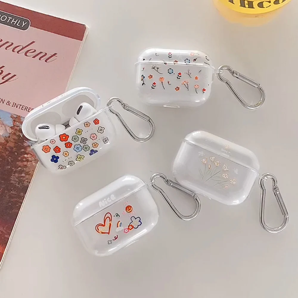 Прозрачный чехол с цветами для Apple Airpods Pro, чехол с мультяшным рисунком, Прозрачный чехол для Airpods 2 1 Pro, милый мягкий силиконовый чехол из ТПУ s, брелок