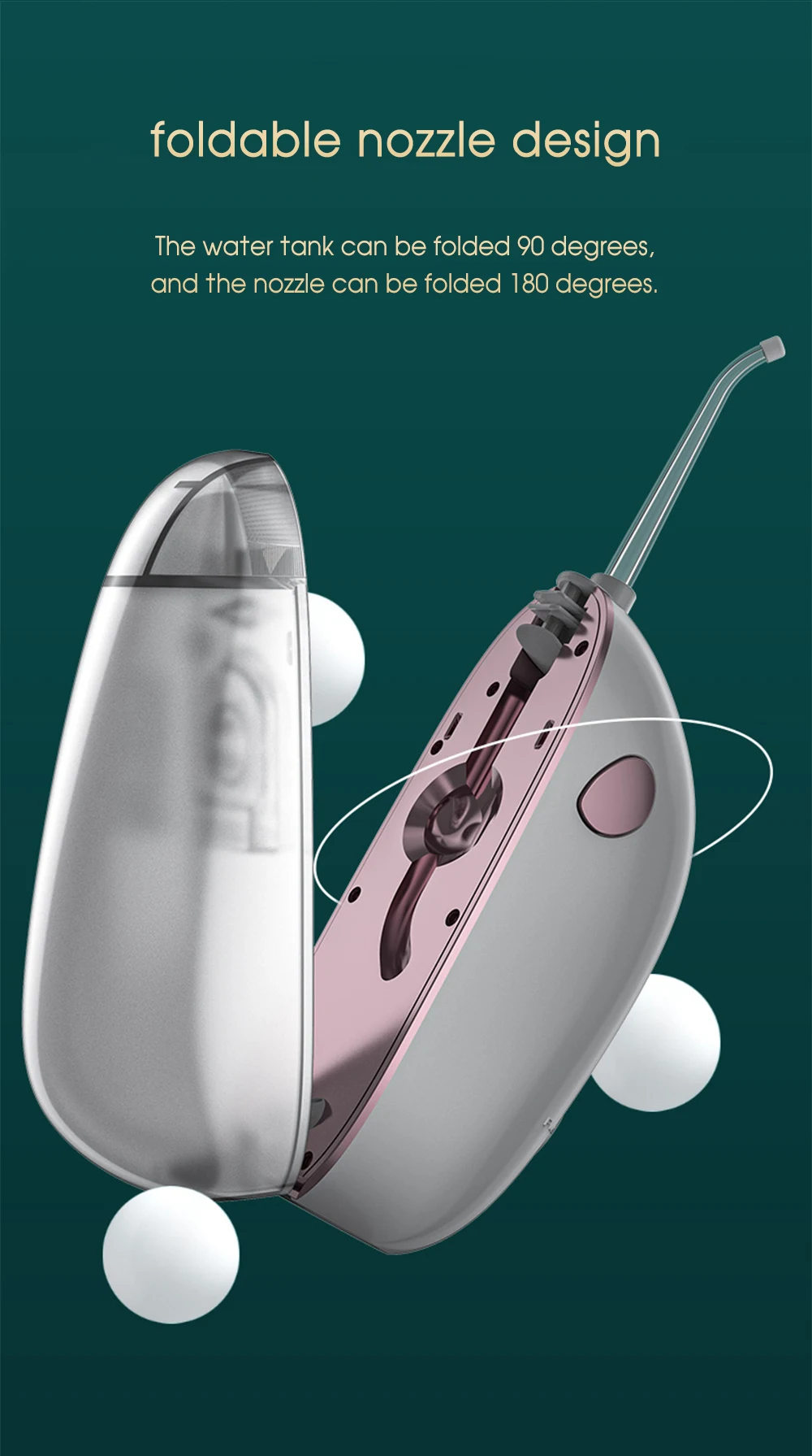 ● Резервуар для воды продукта можно сложить под углом 45-90, а сопло можно сложить под углом 180. Сложите врезку в устройство, когда вам не нужно его использовать, и используйте его непосредственно в следующий раз.