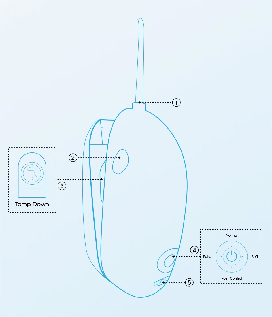 ④. Режимы(Дизайн продукта в трех различных режимах. Пульс, нормальный, мягкий. Различные режимы переключаются в соответствии с различными привычками.)