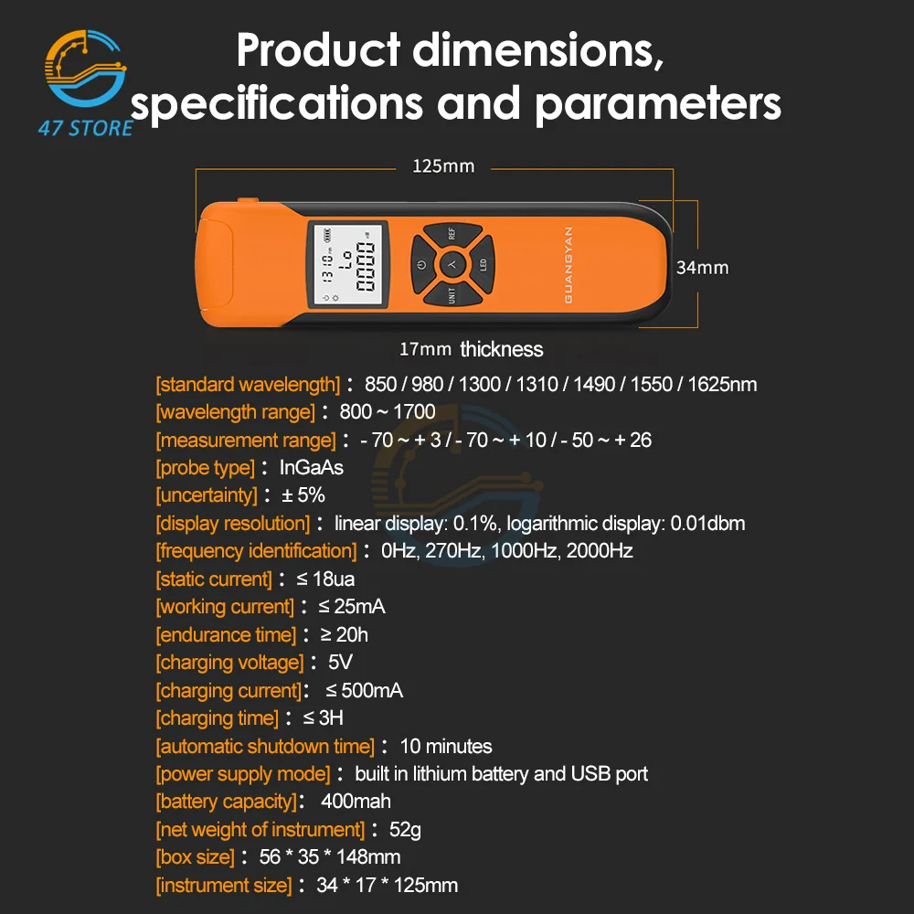 Оптический измеритель мощности G10 Высокоточный перезаряжаемый аккумулятор волоконно-оптический измеритель мощности со вспышкой светильник OPM Аксессуары для инструментов