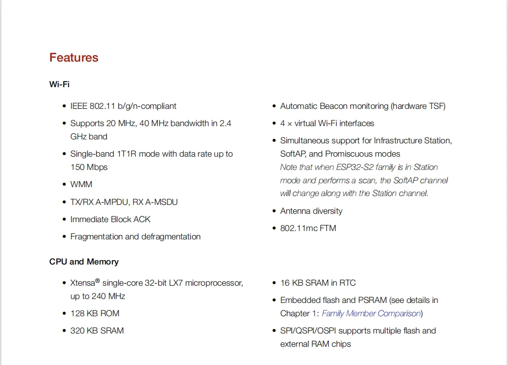 ESP32-S2 Семья представляет собой высокоинтегрированный, низкое энергопотребление, 2,4 ГГц Wi-Fi Системы на чипе (SoC). Благодаря своей современной мощи и производительности RF этот SoC является идеальным выбором для широкого спектра сценариев применения, связанных с Интернетом вещей (IoT), переносная электроника и умный дом.