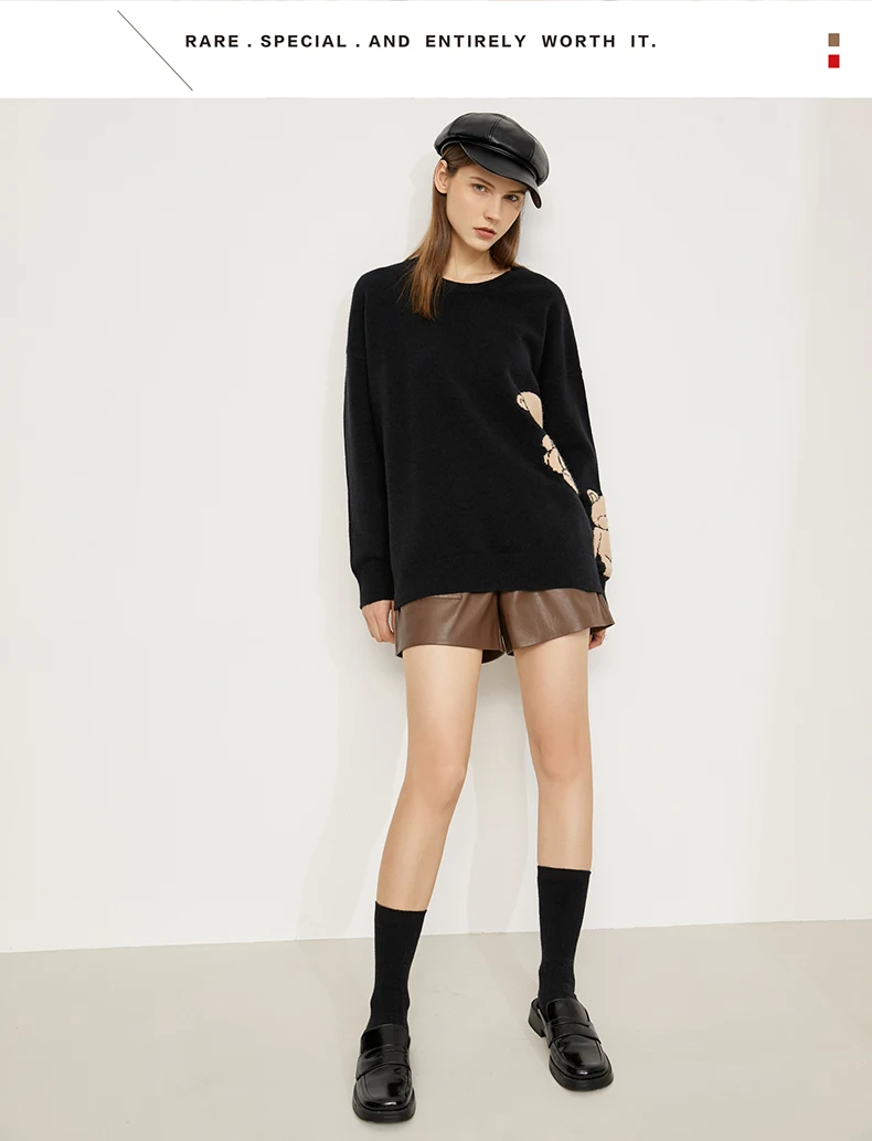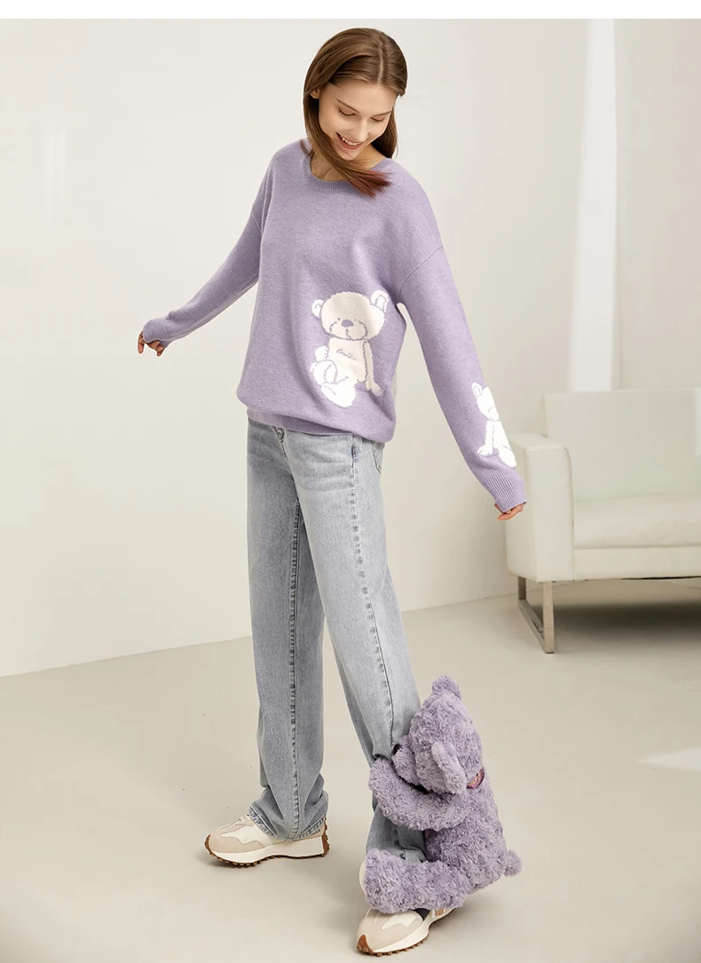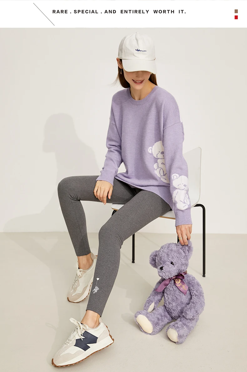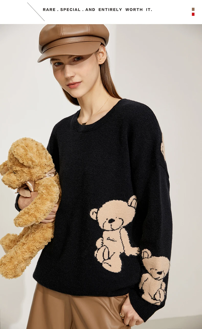 AMII минималистичный свитер для женщин с модным принтом медведя, свободный осенне-зимний вязаный Топ с круглым вырезом, пуловер, женская одежда 12175229