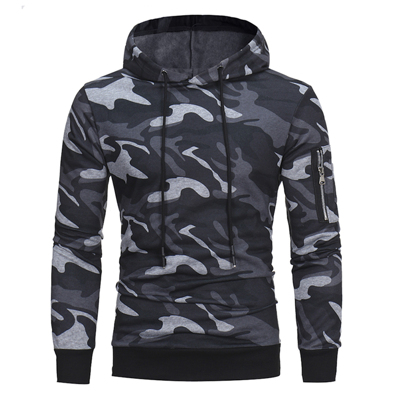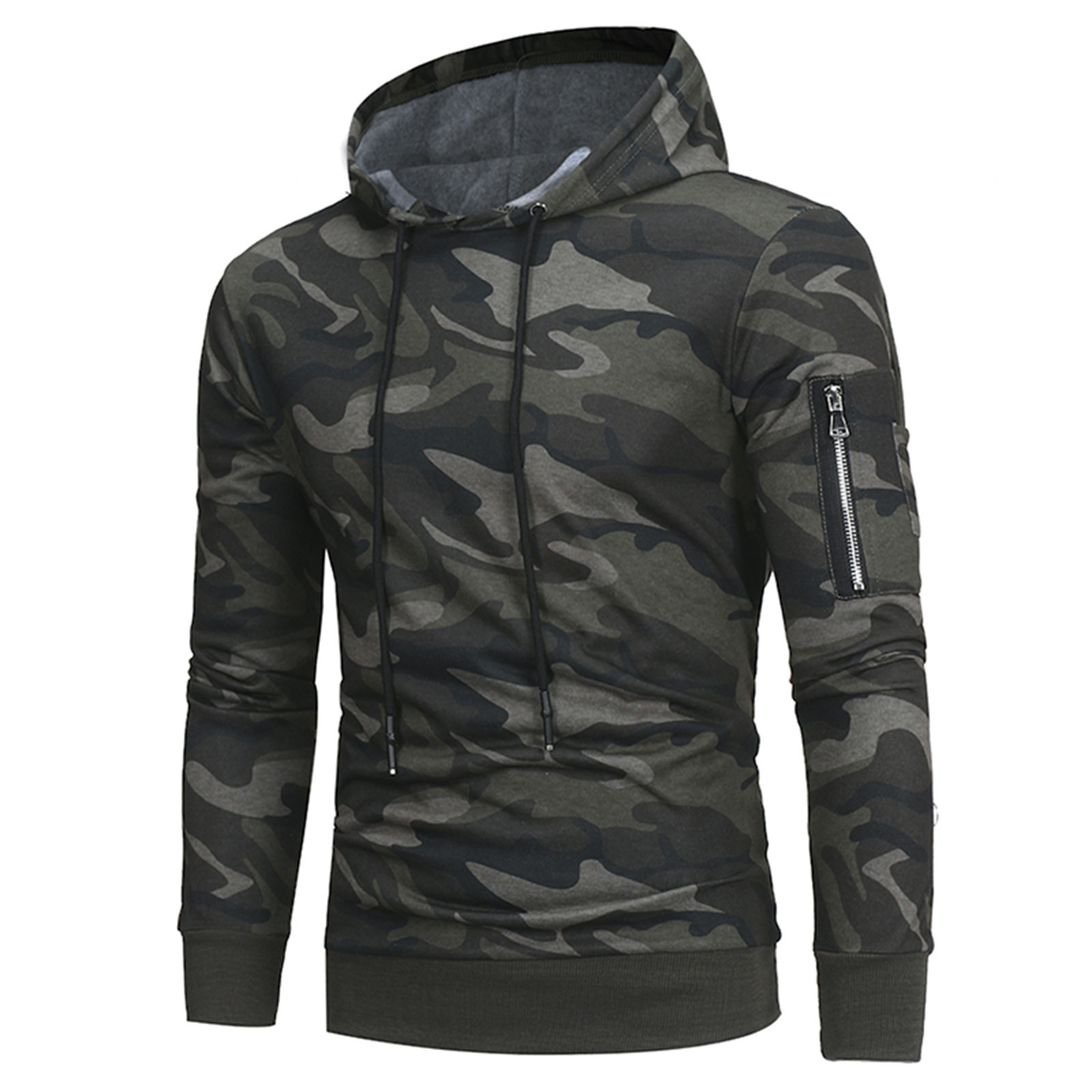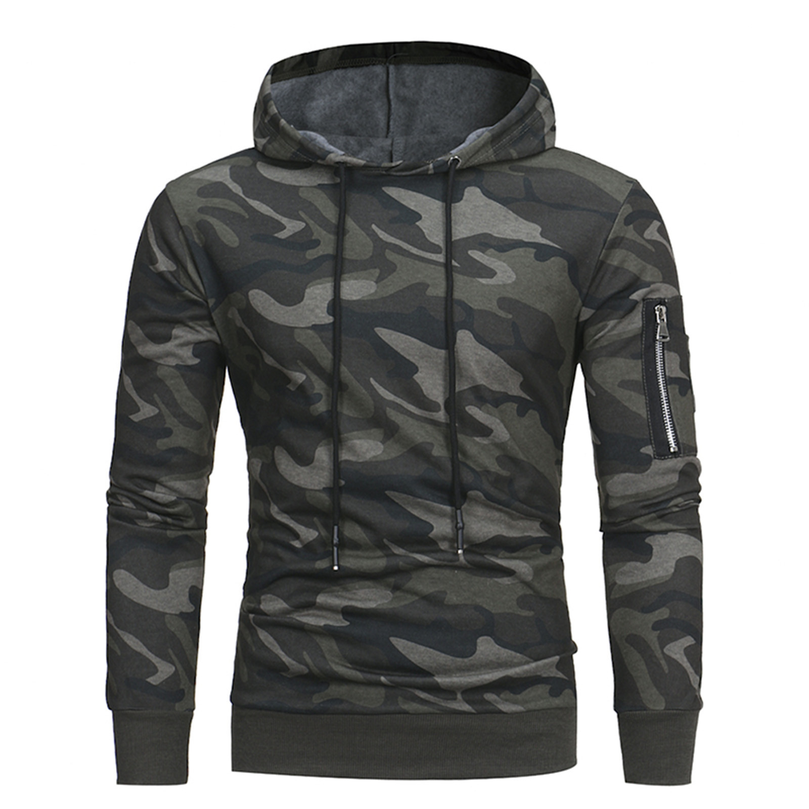 Мужская камуфляжная толстовка с капюшоном и длинным рукавом в рубчик