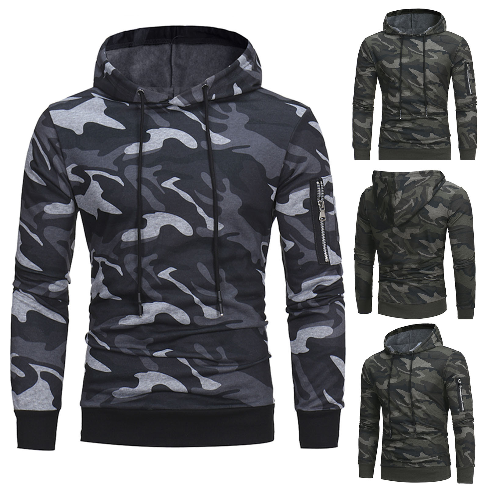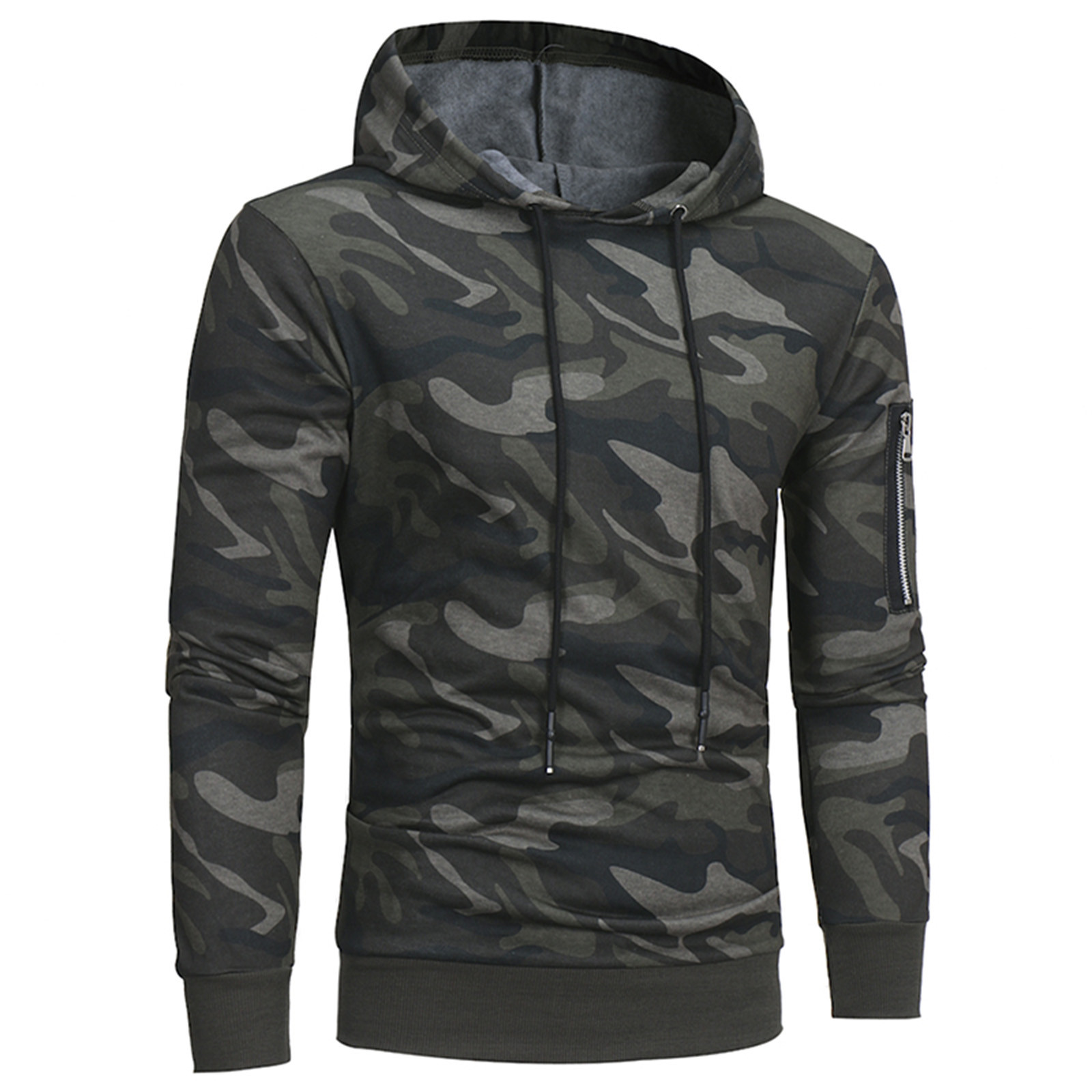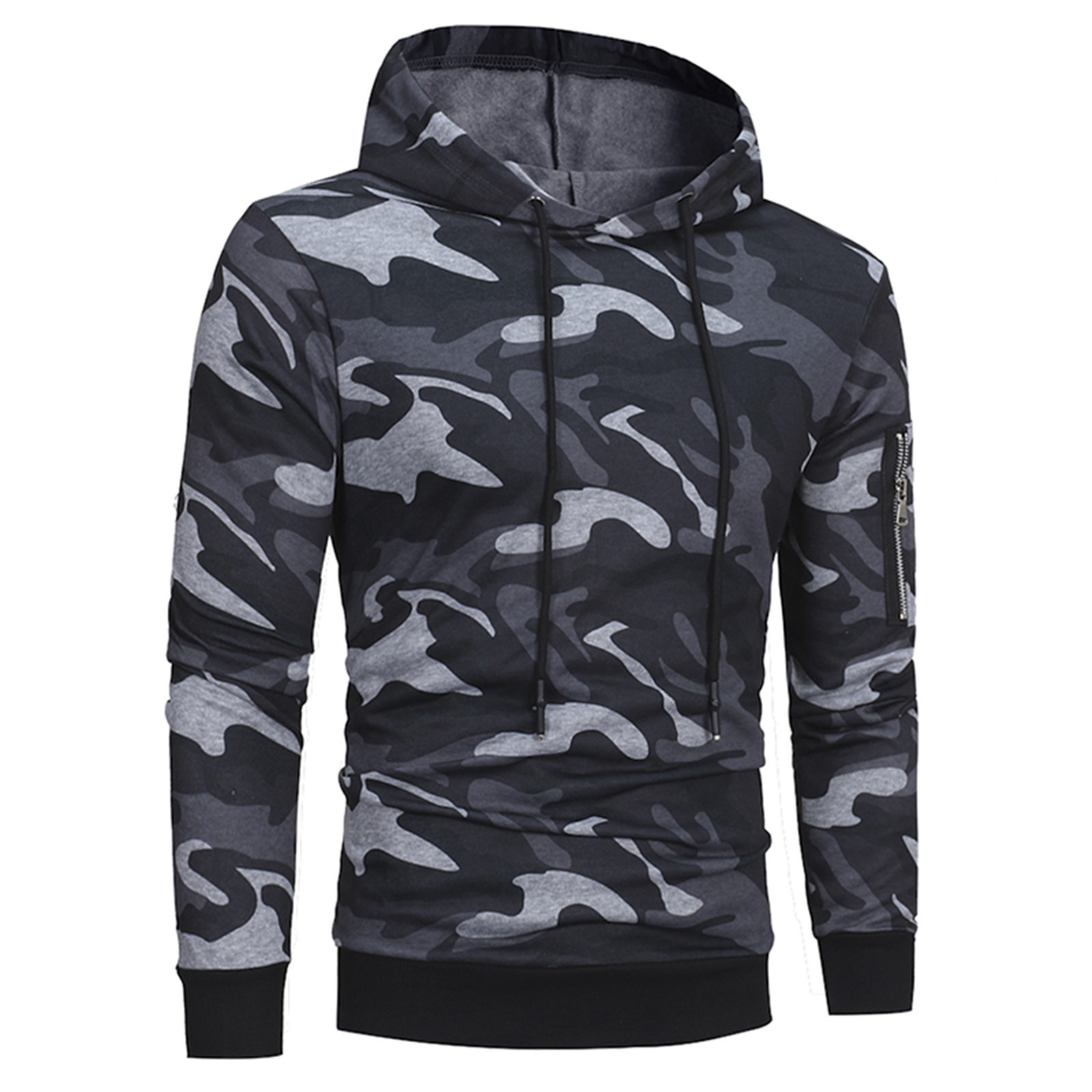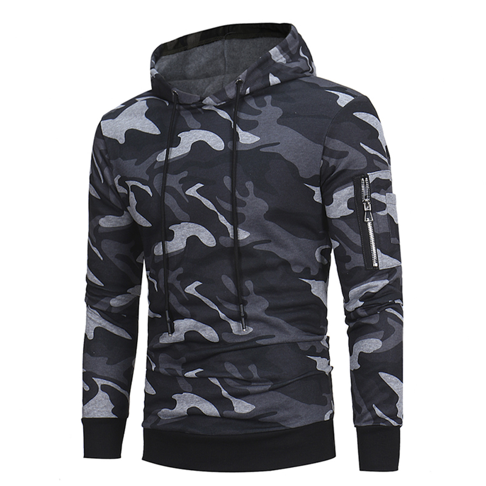 Мужская камуфляжная толстовка с капюшоном и длинным рукавом в рубчик