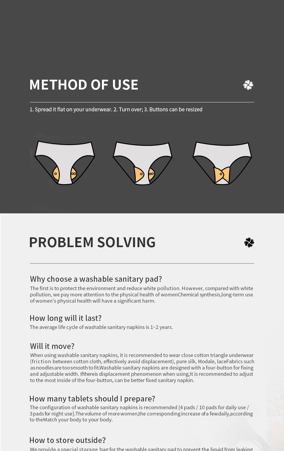 Основные предметы для женщин: Этот набор экономит ваши расходы, значительно помогает сократить отходы на свалках, полезен для окружающей среды и для нас самих. Его можно использовать будь то менструация, послеродовое кровотечение или недержание мочи.