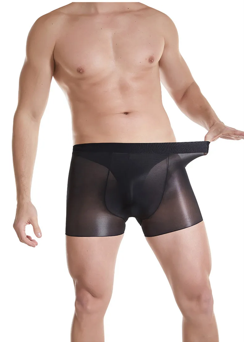 Мужское сексуальное прозрачное нижнее белье, шорты, боксеры, ультра тонкие прозрачные глянцевые трусики, сексуальные прозрачные Гладкие трусы
