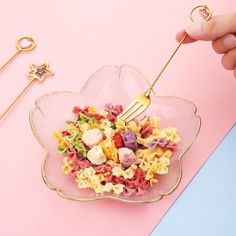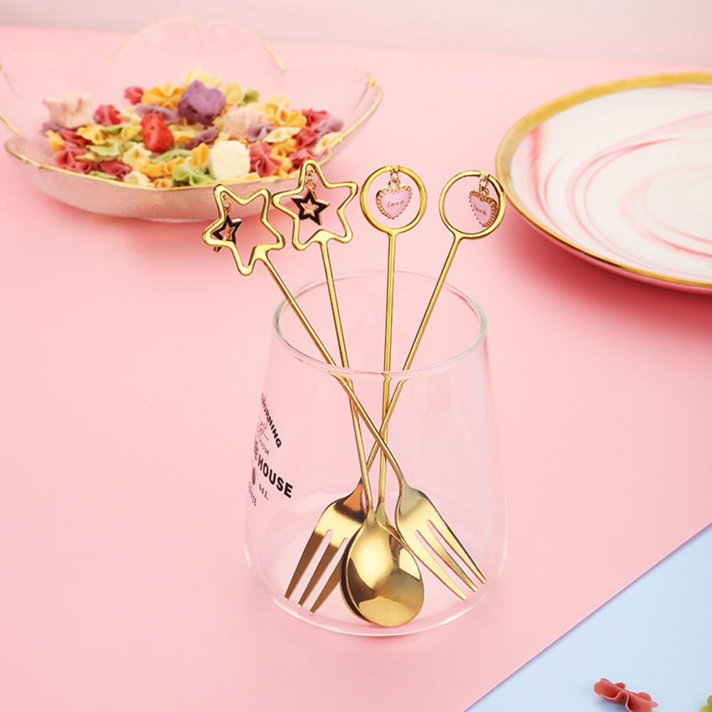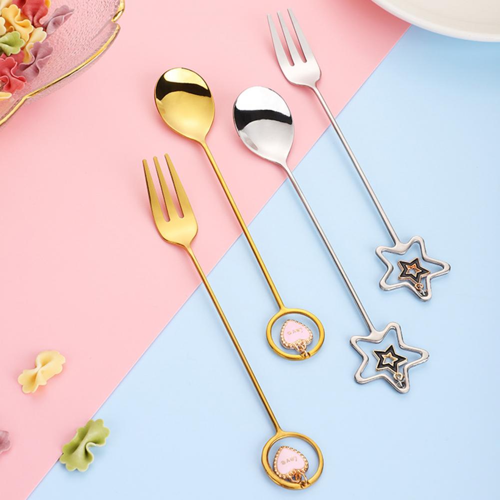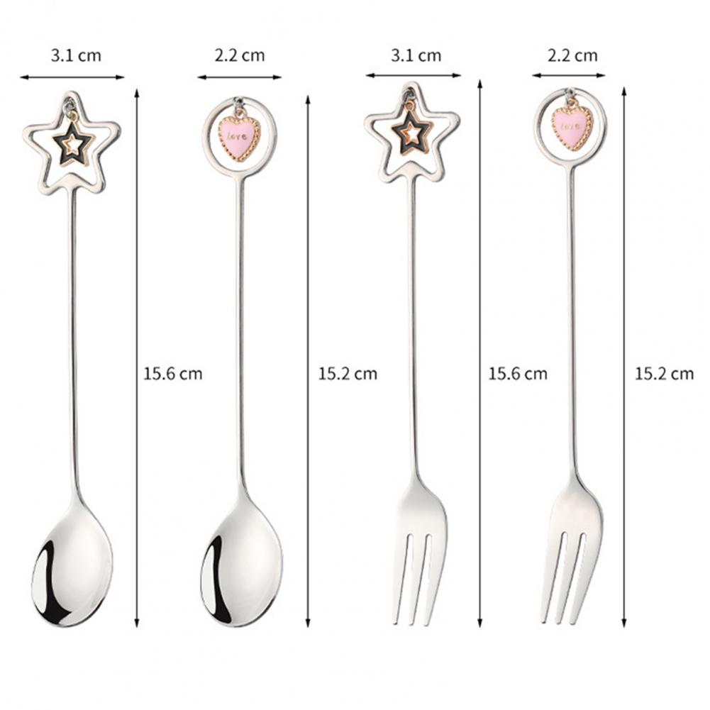 Each spoon and fork comes with love heart or five-pointed star shape on the tail of handle so that it can be used as a nice dessert decorations.