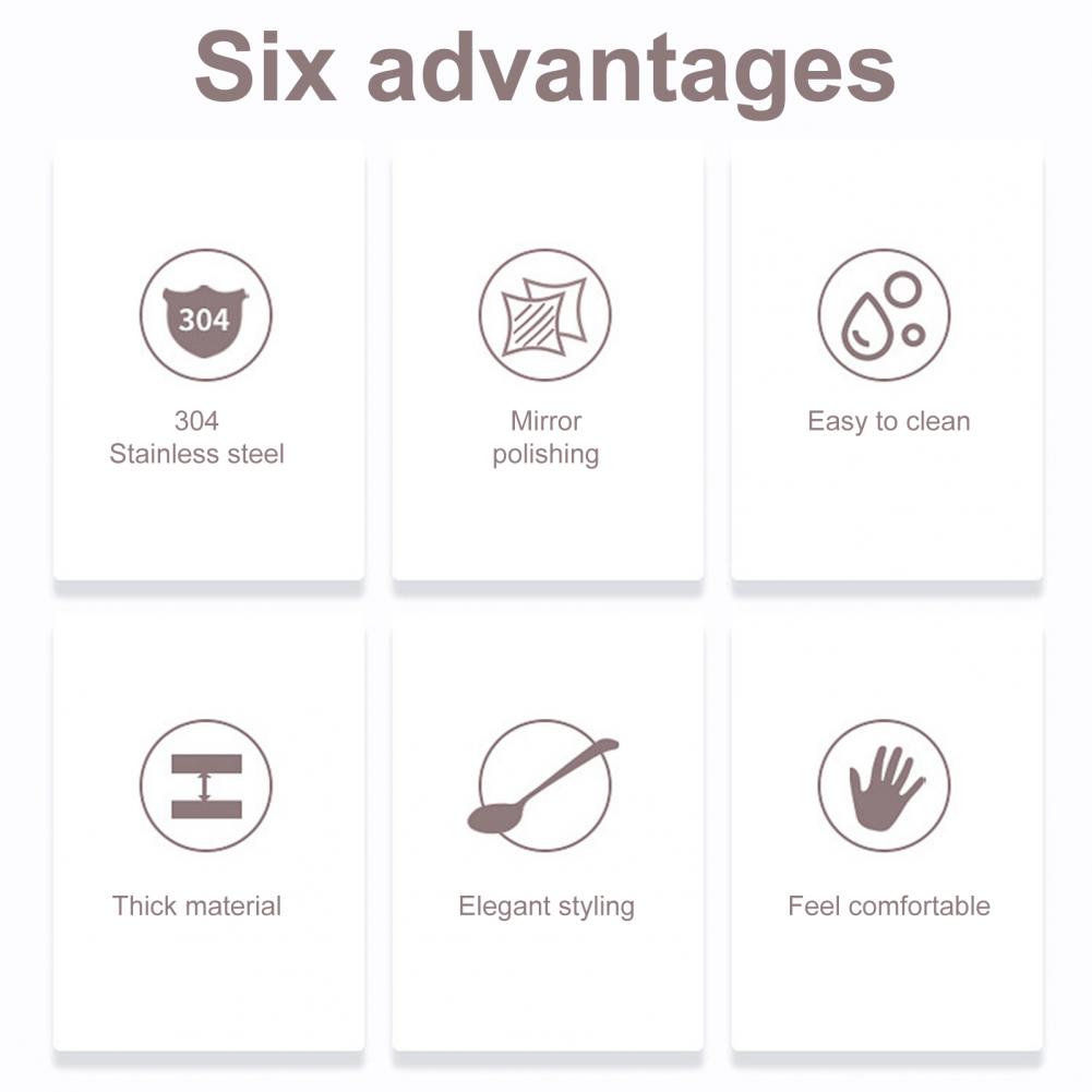 Поверхность этой вилки или ложки отполирована зеркалом, поэтому она достаточно гладкая и не повредит губы или язык.