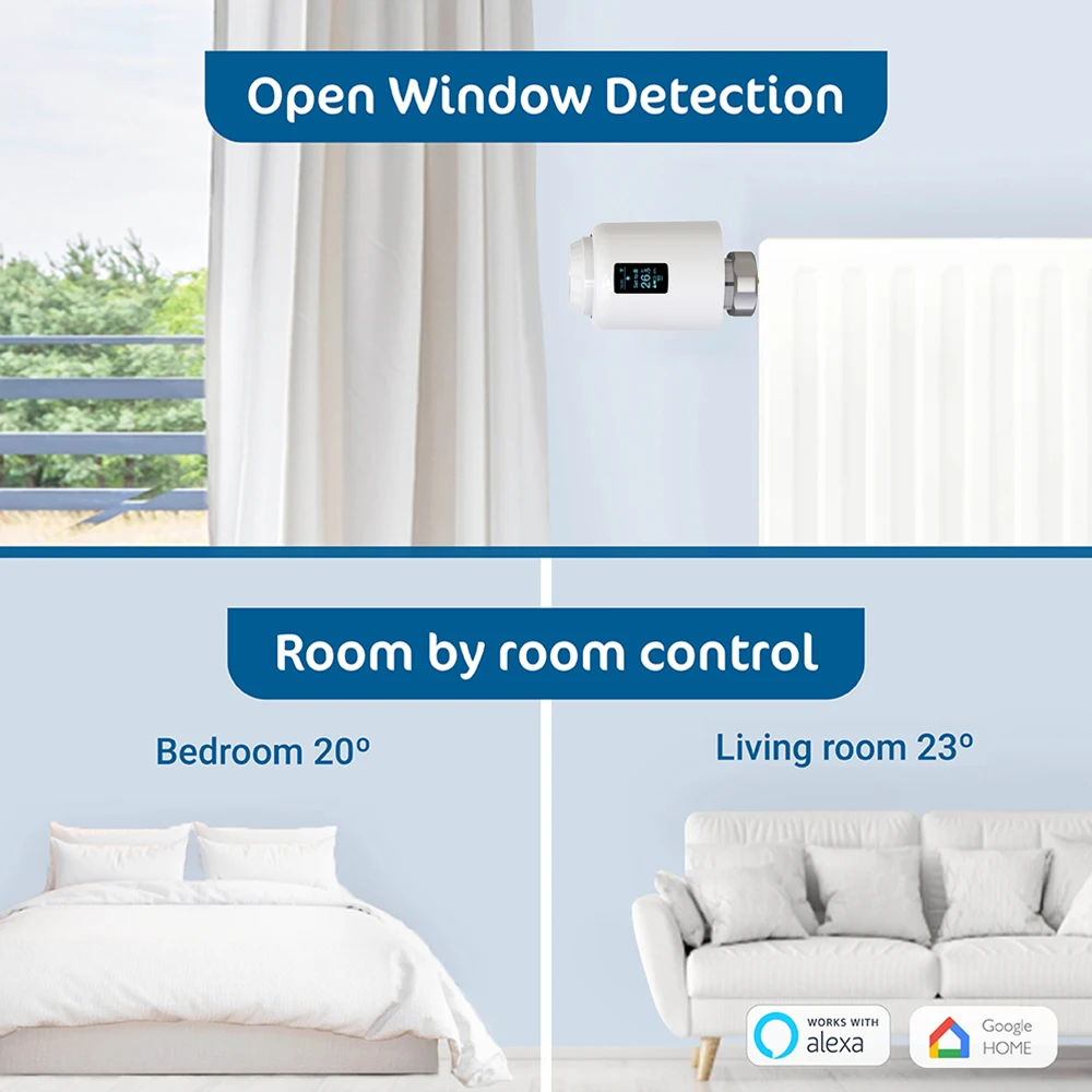 Когда температура в помещении быстро опускается в темп. Порог, клапан закроется в течение 15 минут. После этого, если температура в комнате. Все еще ниже температуры. Порог, он будет держать этот режим. Кроме того, легко считывать цифровой дисплей с температурой Цельсия.