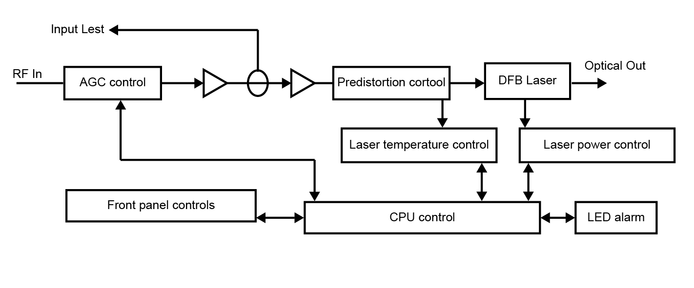 2. The advanced multi-frequency RF predistortion technology uses RF power automatic processing technology to automatically optimize the drive level so that the C/CTB, C/CSO, and C/N specifications are always at optimal values.