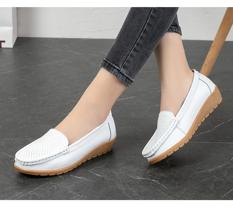 Женская обувь на плоской подошве; Модные повседневные Лоферы без застежки; Женская обувь из натуральной кожи; Мокасины размера плюс; Женская обувь; Женские лоферы для медсестры