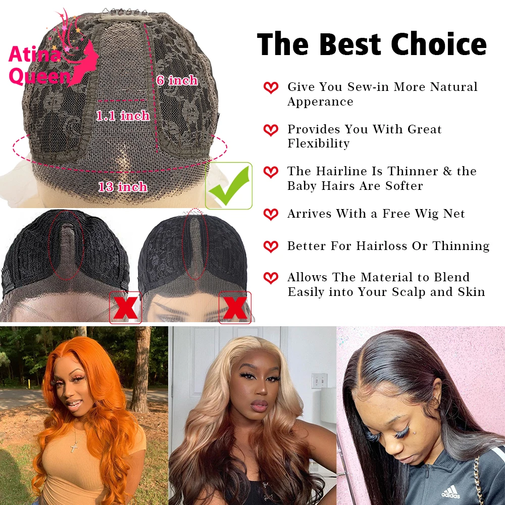 ✔Большой фронтальный Размер шнурка: 4 дюйма фронтальный или HD 360 кружевной фронтальный парик или T часть парика
