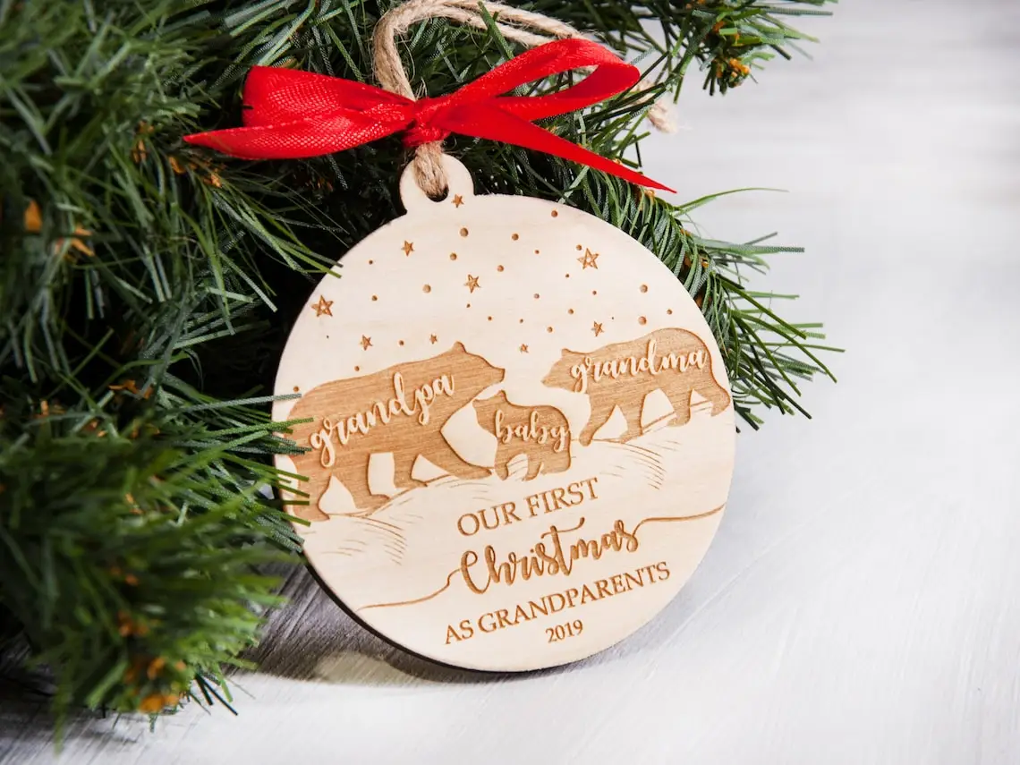 Индивидуальный первый Рождественский орнамент, рождественский подарок для бабушек и дедушек, медведь, семья, новый подарок для бабушек и дедушек, деревянный