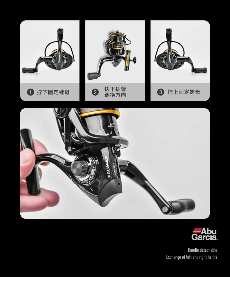 Оригинальная карта ABU GARCIA Pro Max Рыболовная катушка 500-4000 Серия 6 + 1BB 5,1: 1/5.2:1 Max 6,5 кг Алюминий катушки Низкопрофильная Катушка для спиннинга