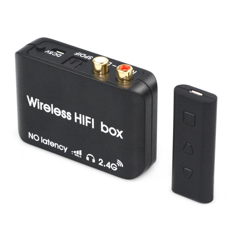 Характеристика: 1. Беспроводной 2,4G HIFI/без задержки аудио передатчик передает цифровое оптическое аудио и аналоговое R/L аудио через беспроводное 2,4G для достижения высокой точности беспроводное аудио соединение между аудио оборудованием