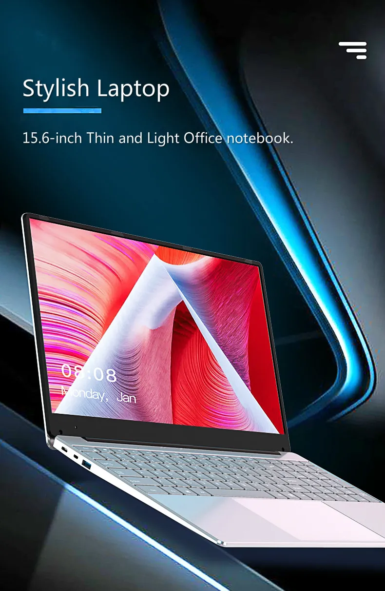 Стильный ноутбук 15,6 дюймов Тонкий и светильник офисный ноутбук.