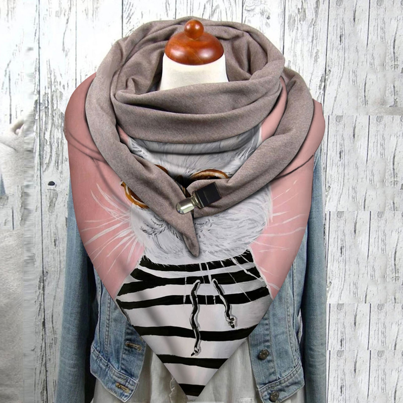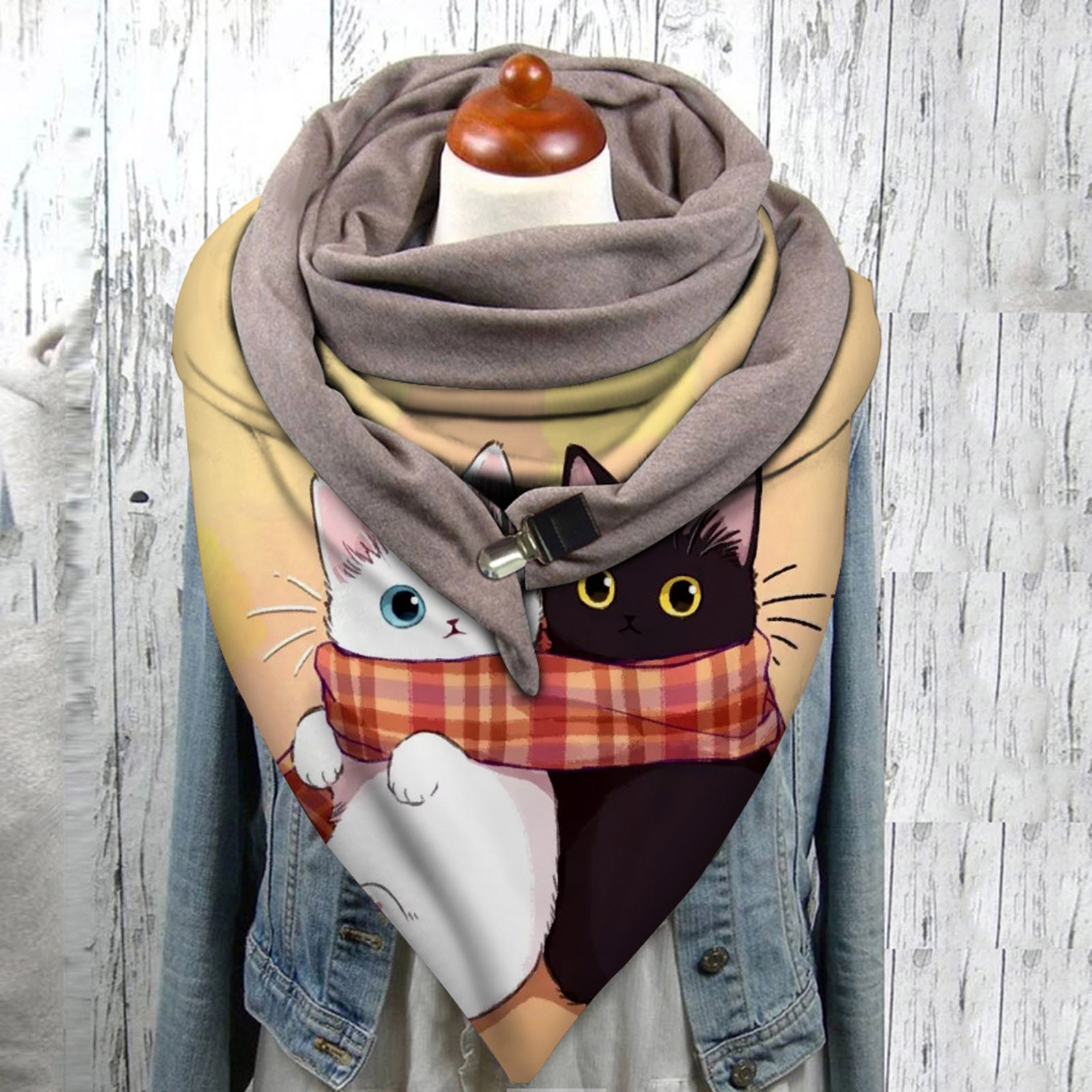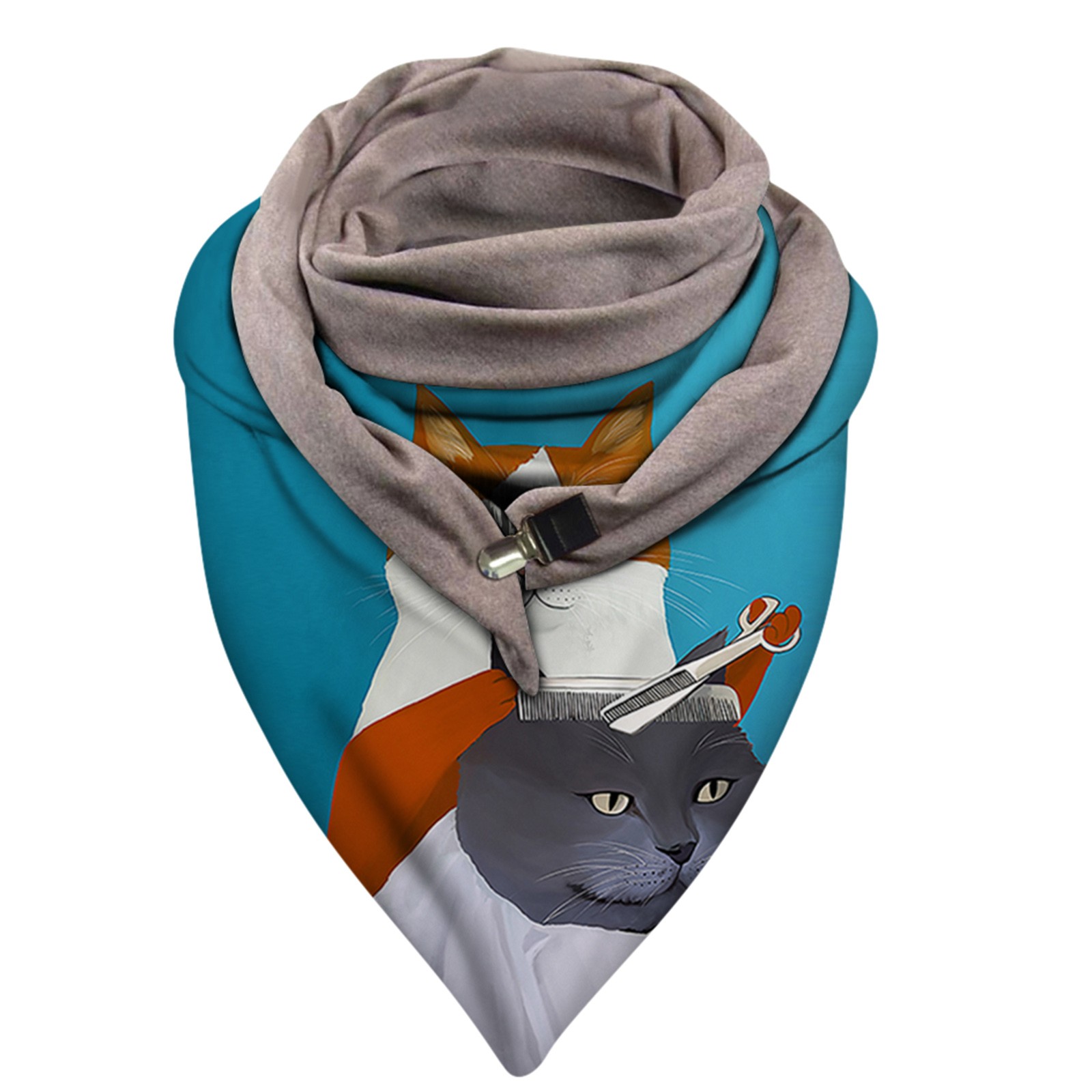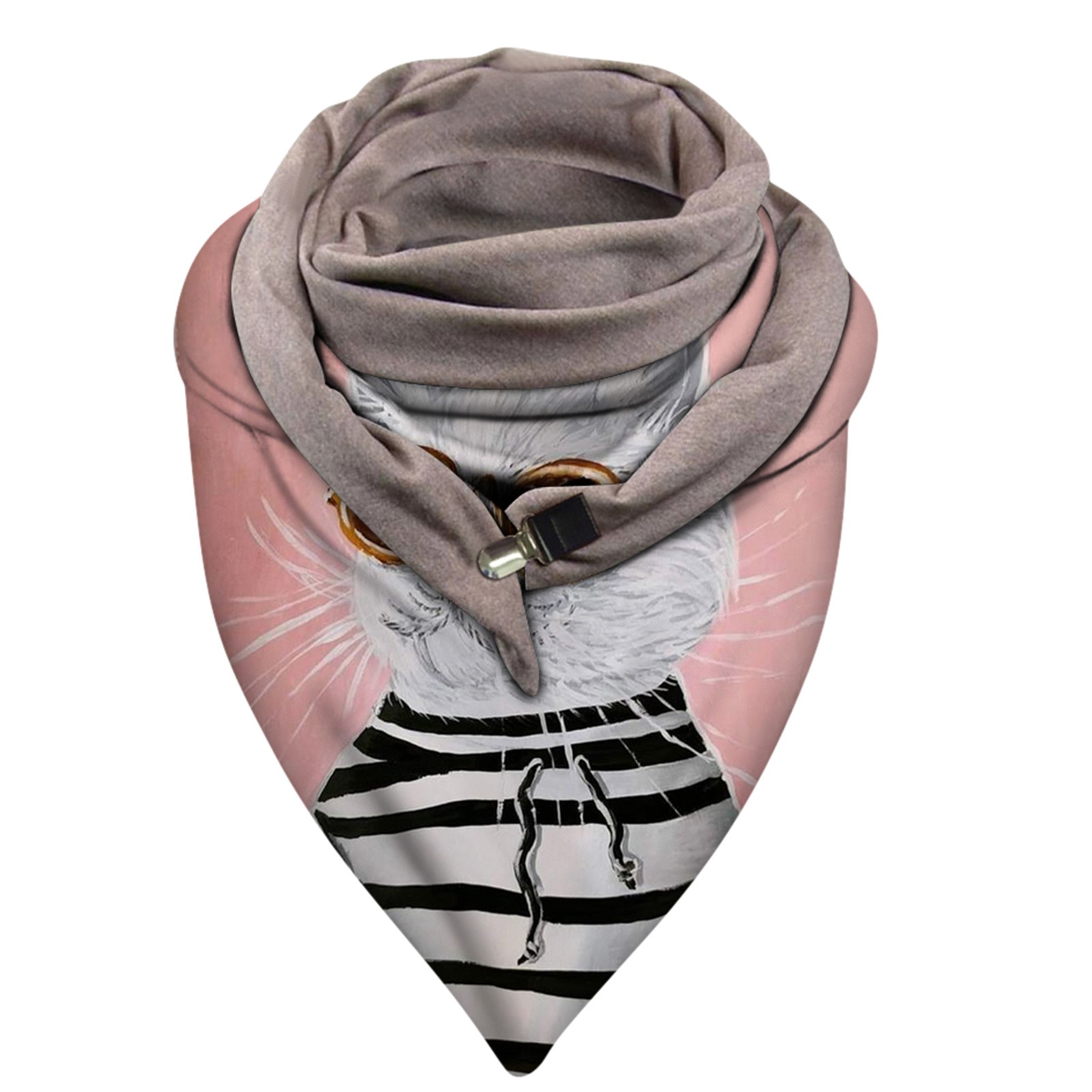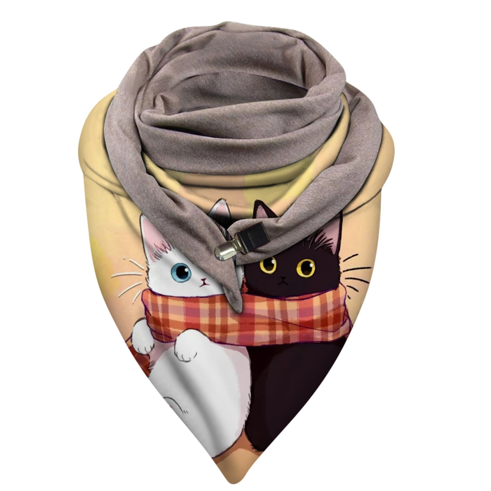Universal Autumn Winter Warm Windproof Cat Prints Double-Layer Buckle Scarf