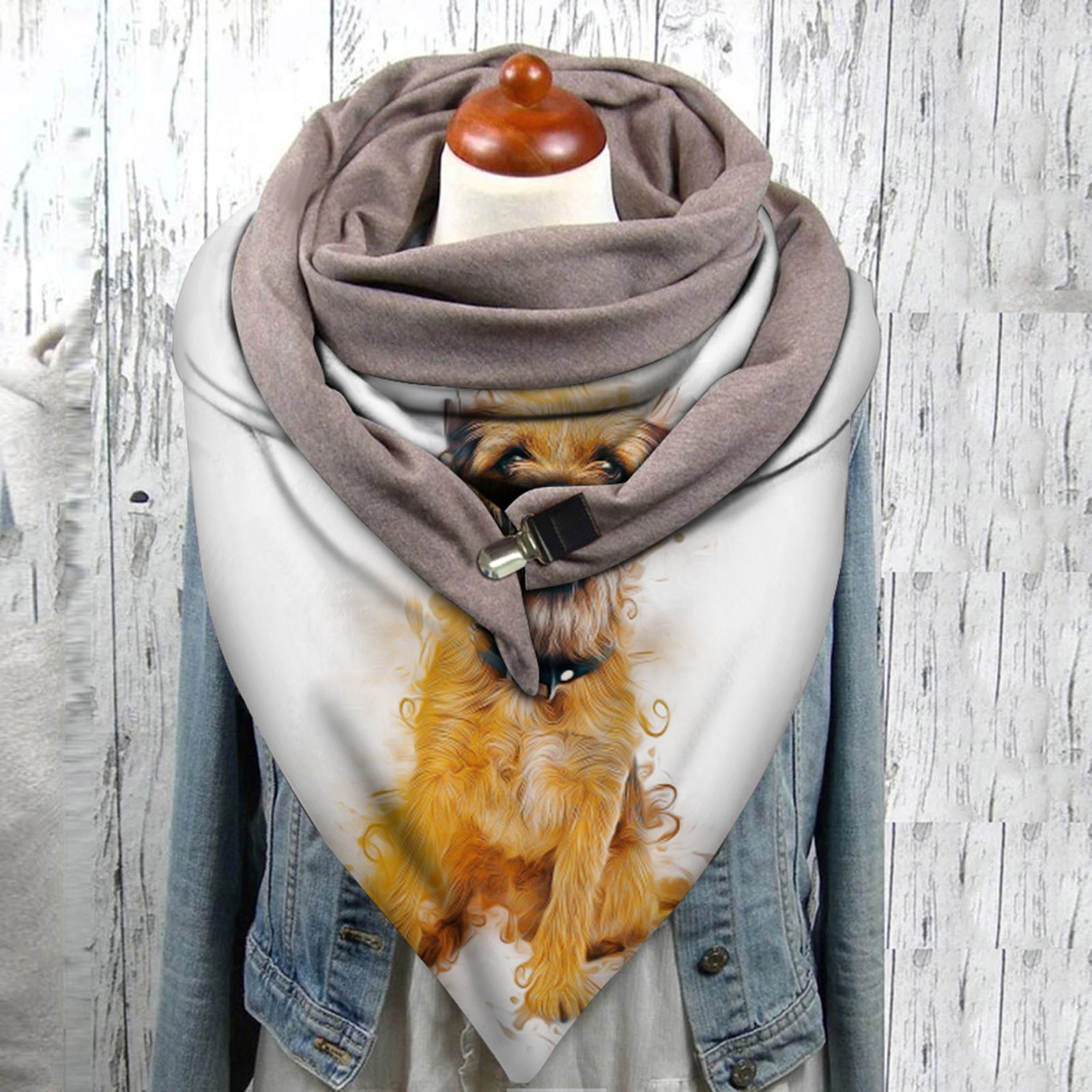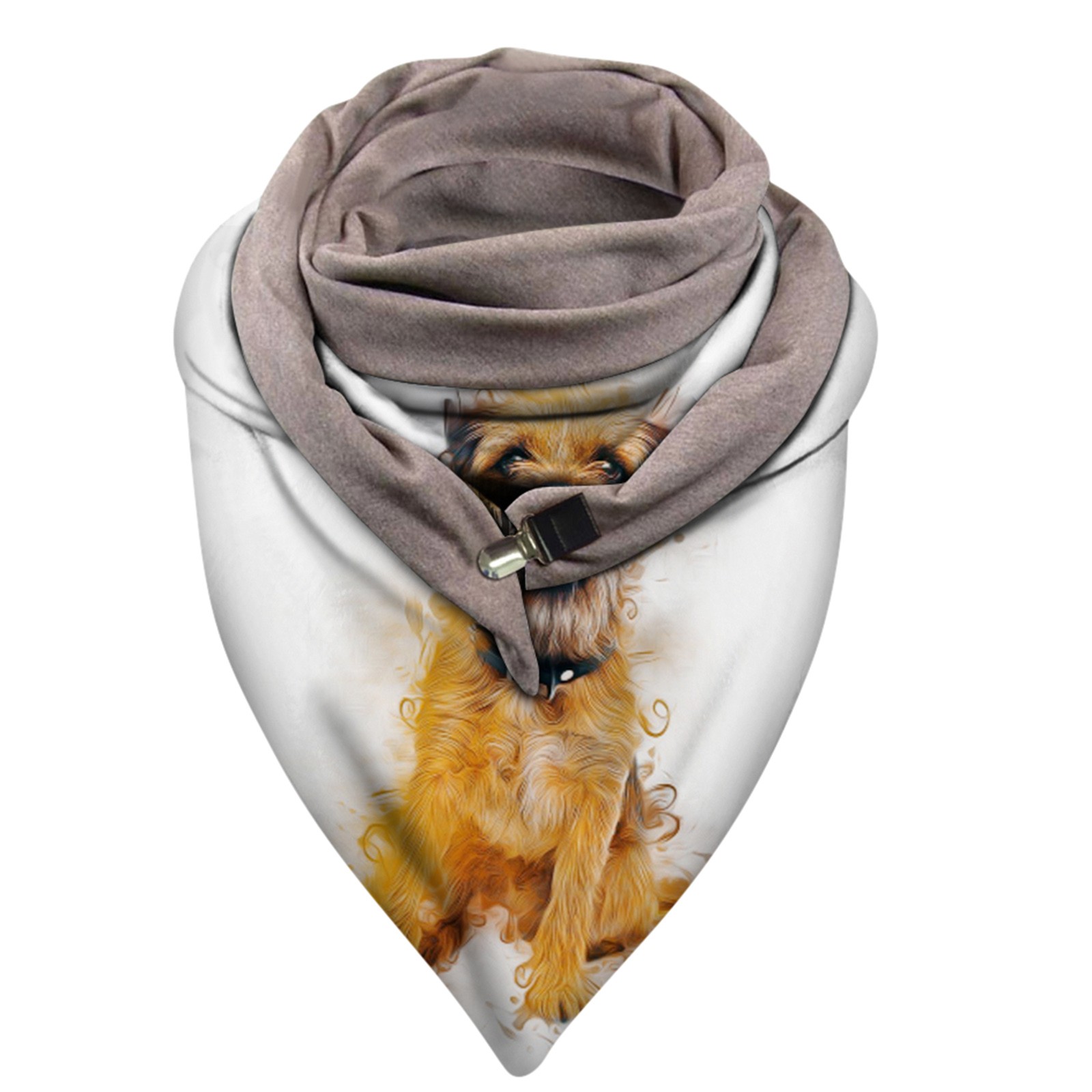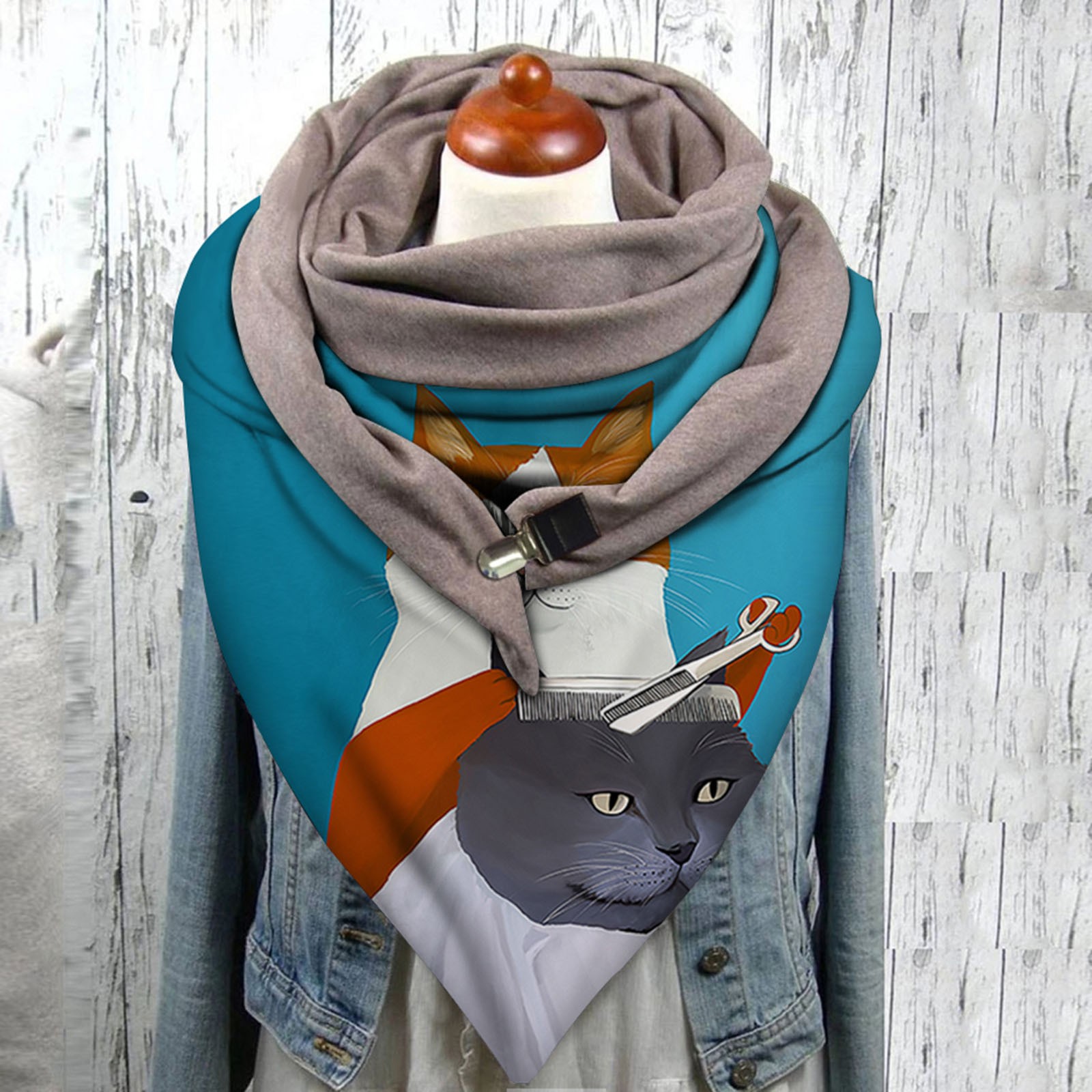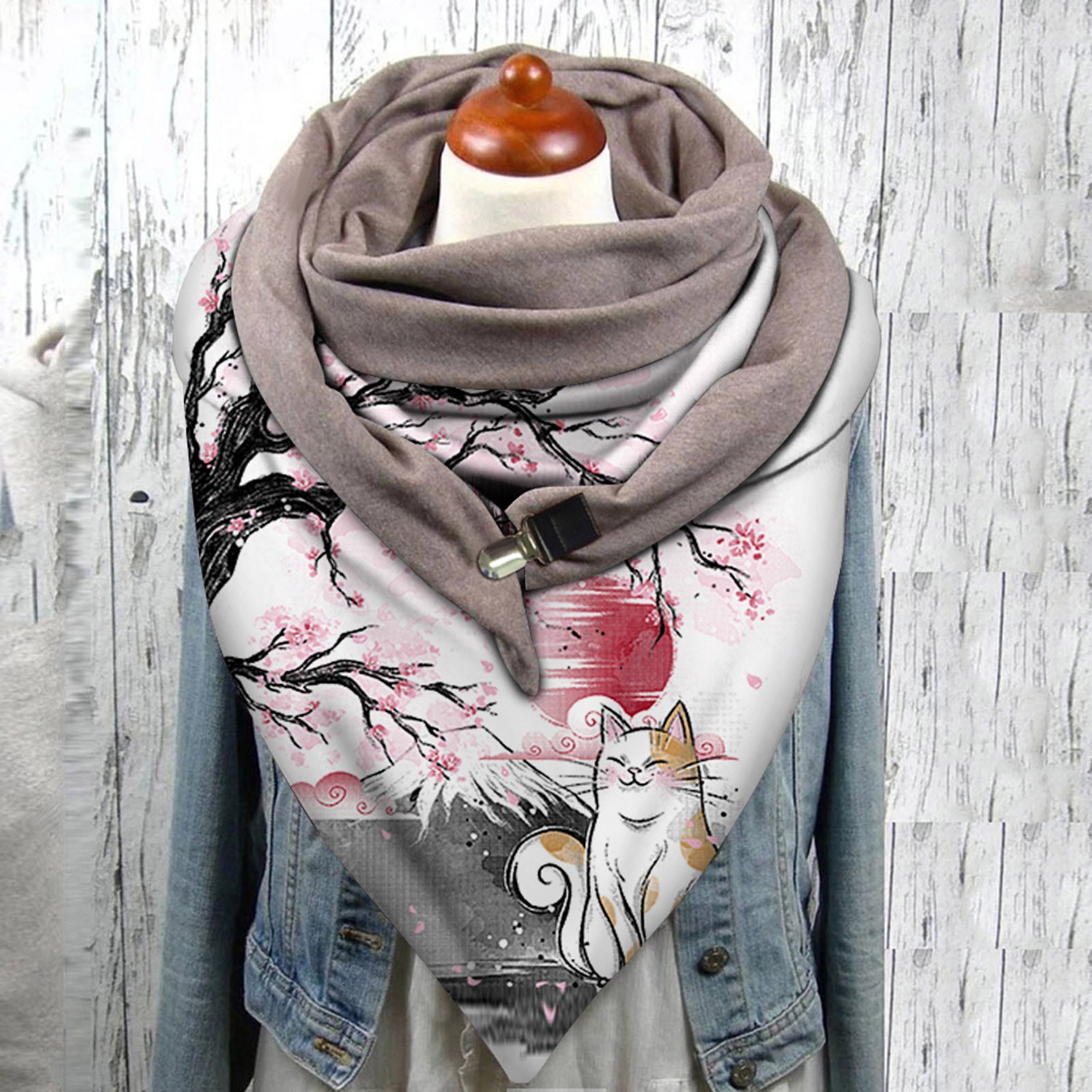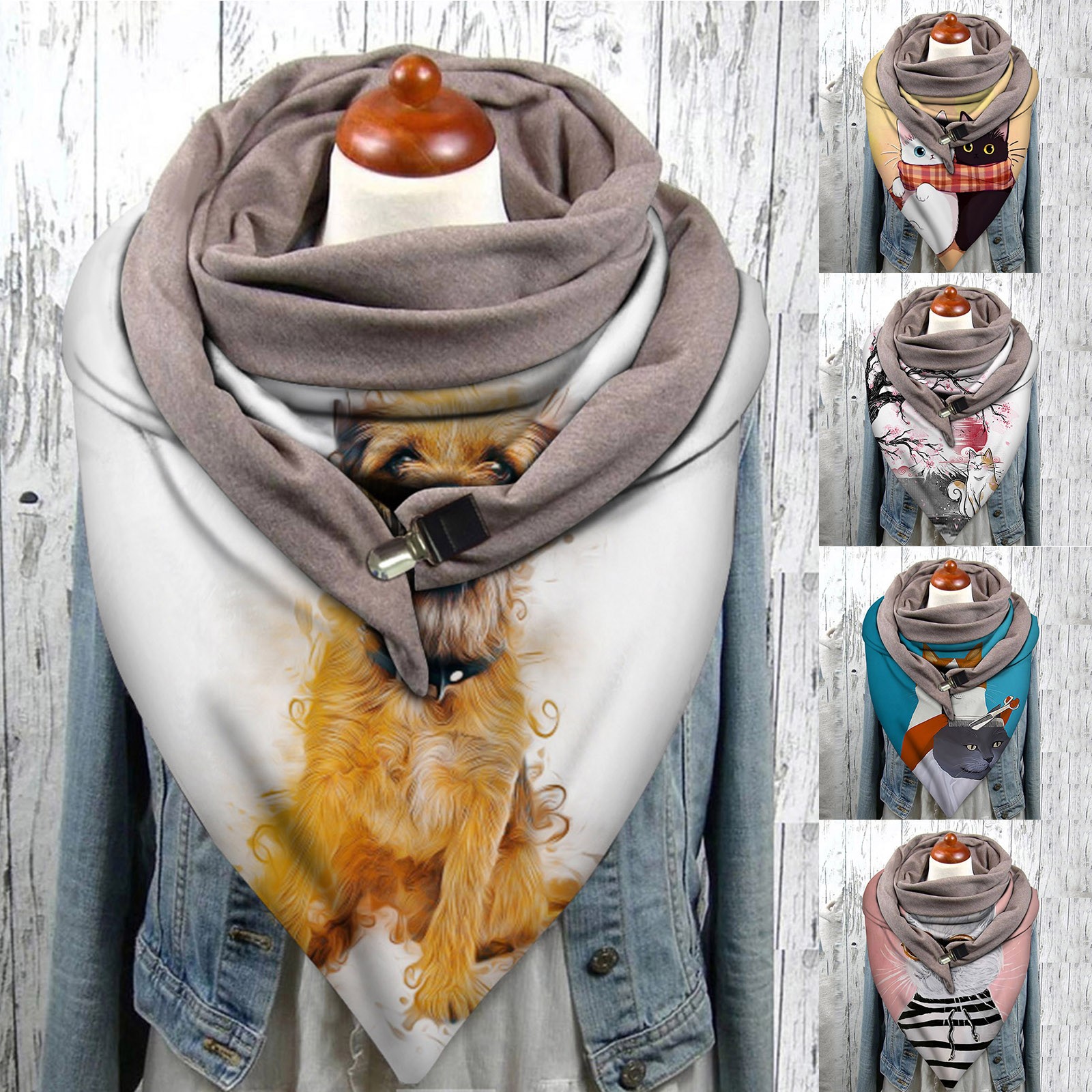 Universal Autumn Winter Warm Windproof Cat Prints Double-Layer Buckle Scarf