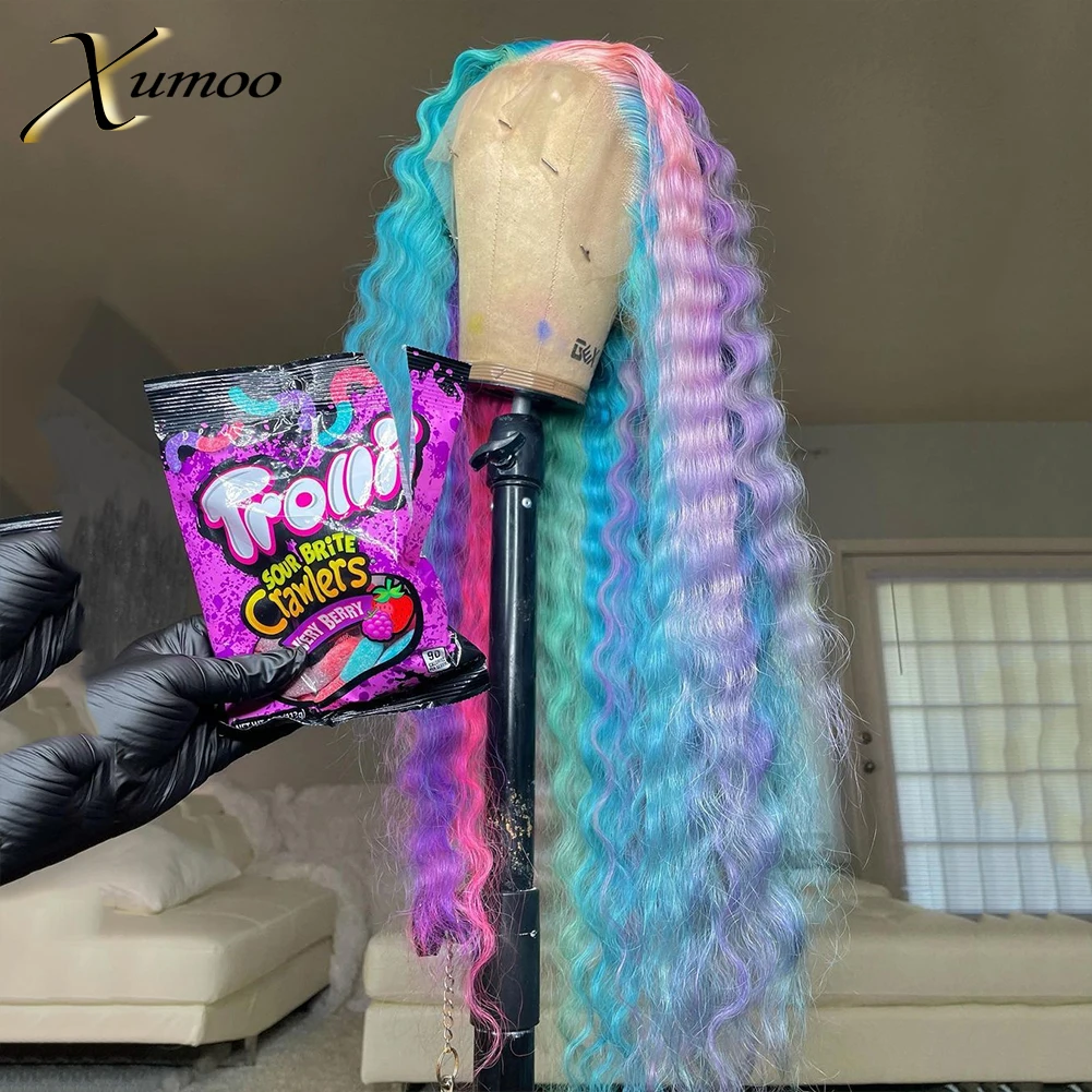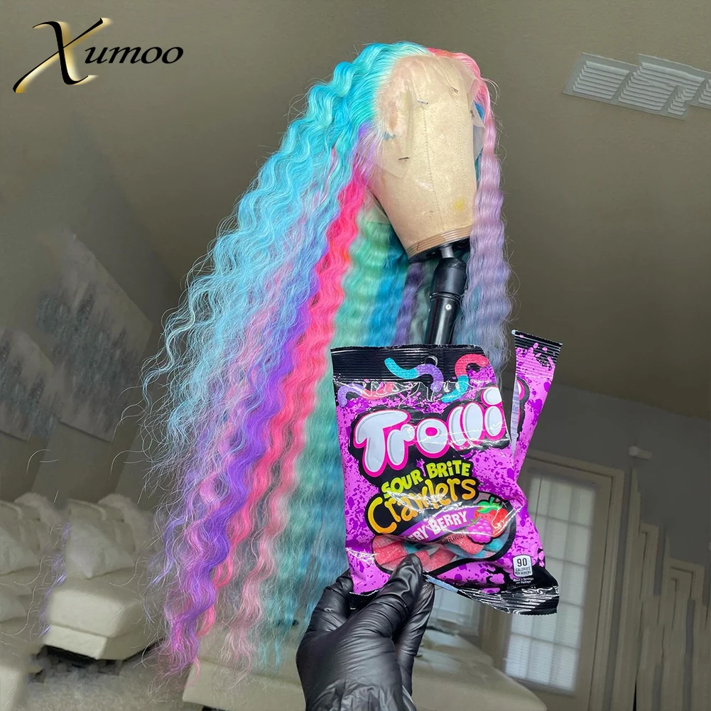 XUMOO, глубокий волнистый Радужный кружевной передний парик, необработанные Т-образные части, дешевые необработанные бразильские человеческие волосы с детскими волосами для костюмированной вечеринки, женские вечерние волосы