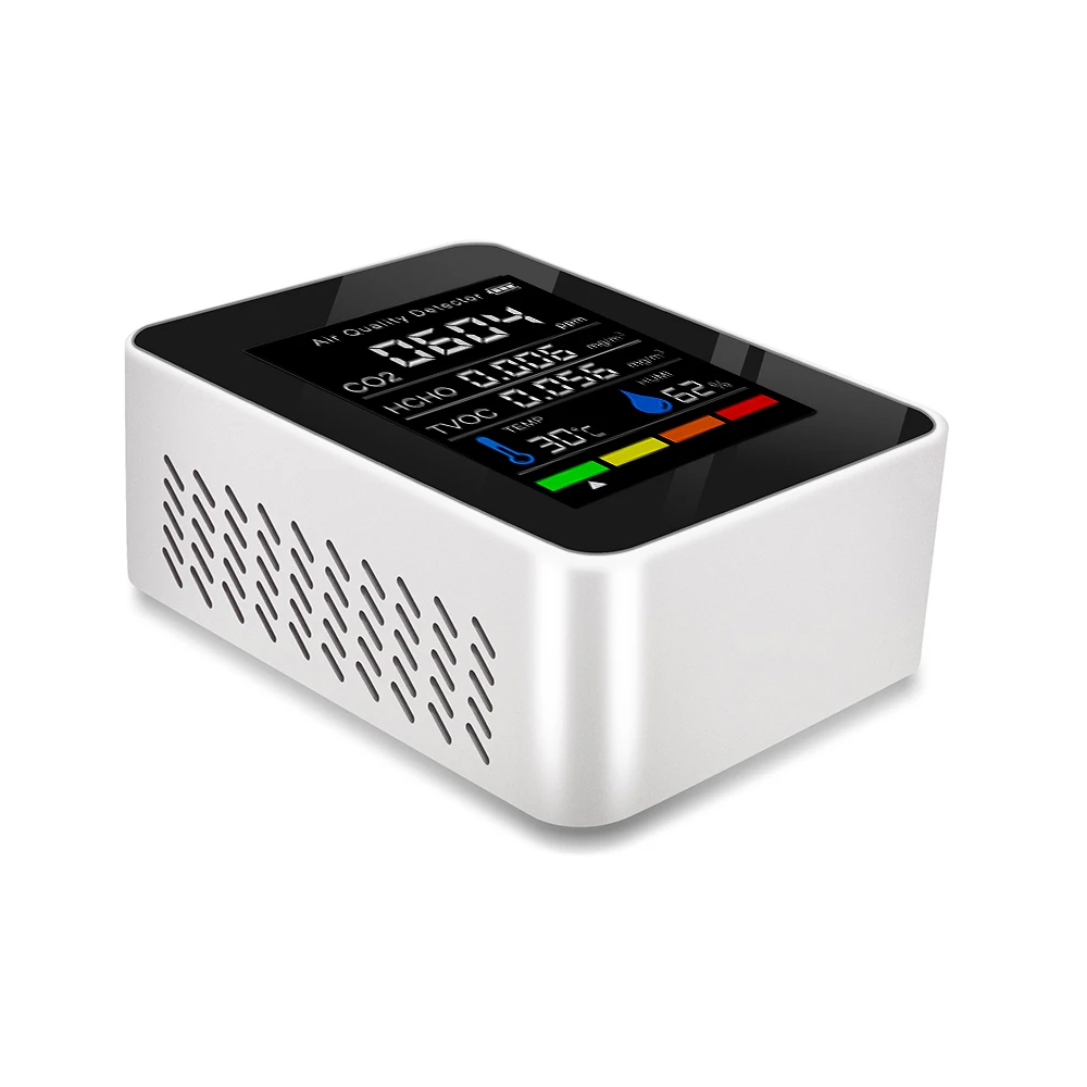 Большой ЖК-дисплей с подсветкой, вы можете видеть количество электроэнергии, значение CO2, значение TVOC, значение HCHO, температуру и влажность четко.