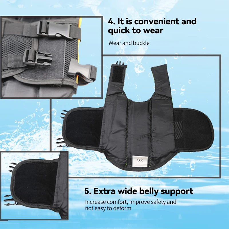 2. Весло и играть дружественно: Жизнь собаки построена с Рипстоп материалом, который обеспечивает комфортную плавучесть в воде, и не ограничивает движение на суше. Поплавок для передней шеи помогает держать голову над водой, а неопреновый ремешок для живота надежно поддерживает грудь и живот.