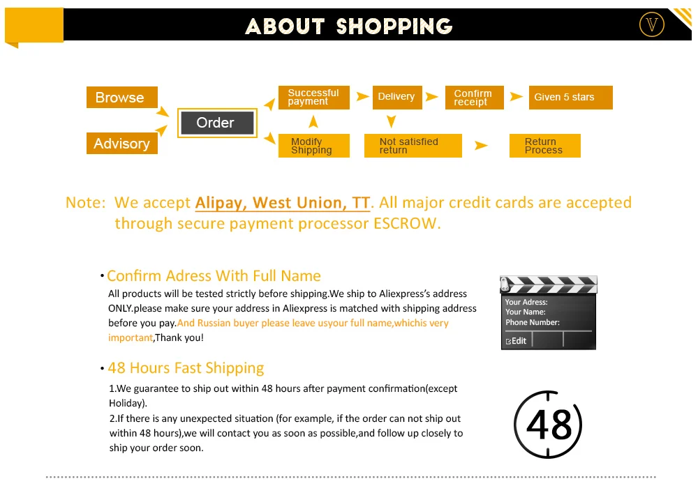 5. Если вы недовольны качеством товара или временем транспортировки. Надеюсь, что вы не открываете спор сразу, пожалуйста, свяжитесь с нами, чтобы решить эти проблемы, и мы постараемся сделать все возможное, чтобы дать вам лучший опыт.