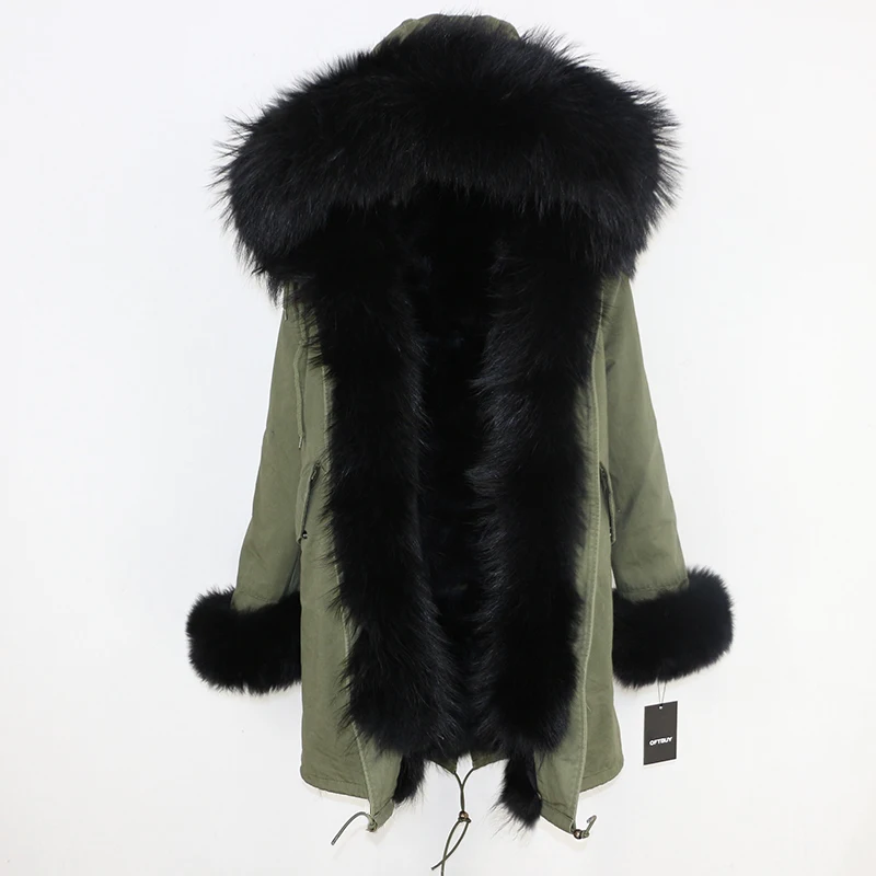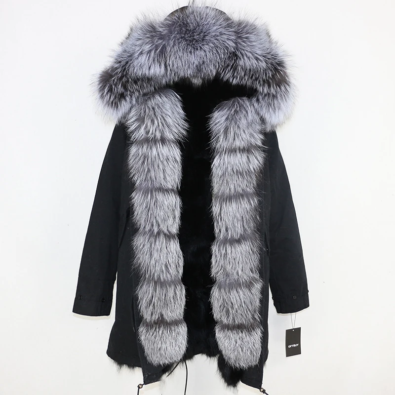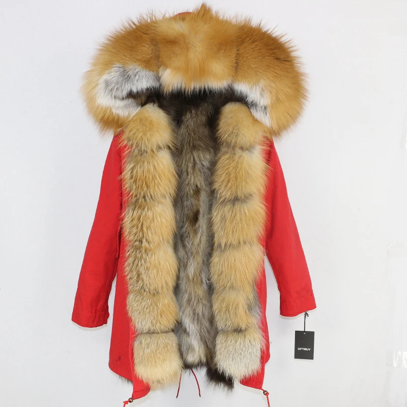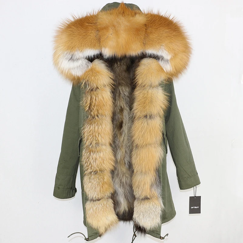 Водонепроницаемая оболочка + хлопковый рукав + жилет из лисьего меха + большой воротник из натурального меха = парка