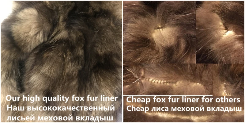 На левой стороне изображения нижеНаша высококачественная подкладка из лисьего меха: