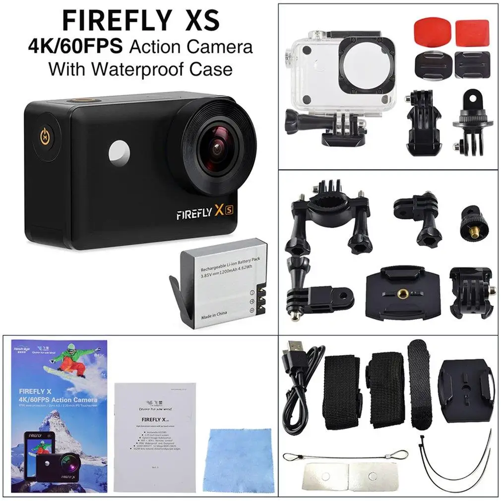 Экшн-камера Firefly XS Wi-Fi FPV 4K с защитой от искажений 90 градусов, Спортивная камера с сенсорным экраном, водонепроницаемый чехол для камеры