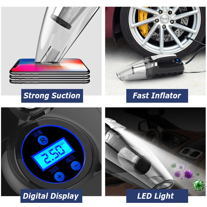 5.Экономьте деньги и место: Нужен пылесос для вашей машины? Нужны цифровые воздушные компрессоры для вашего автомобиля, мотоцикла, плавательного кольца, пневматической кровати, корзины с мячом? Или Автомобильный аварийный свет? За эту цену вы можете получить все, что вам нужно, не волнуйтесь, это взорвет ваш Автомобильный багажник, сэкономит ваши деньги и место!