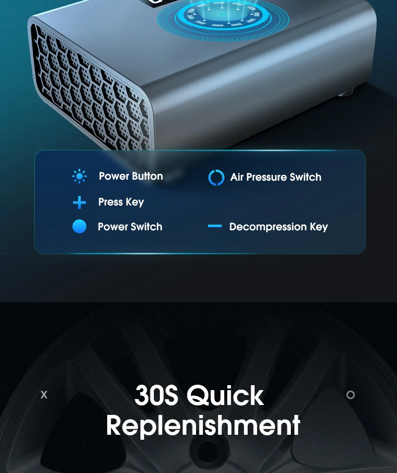 120 Вт беспроводной автомобильный воздушный компрессор Ручной USB Перезаряжаемый