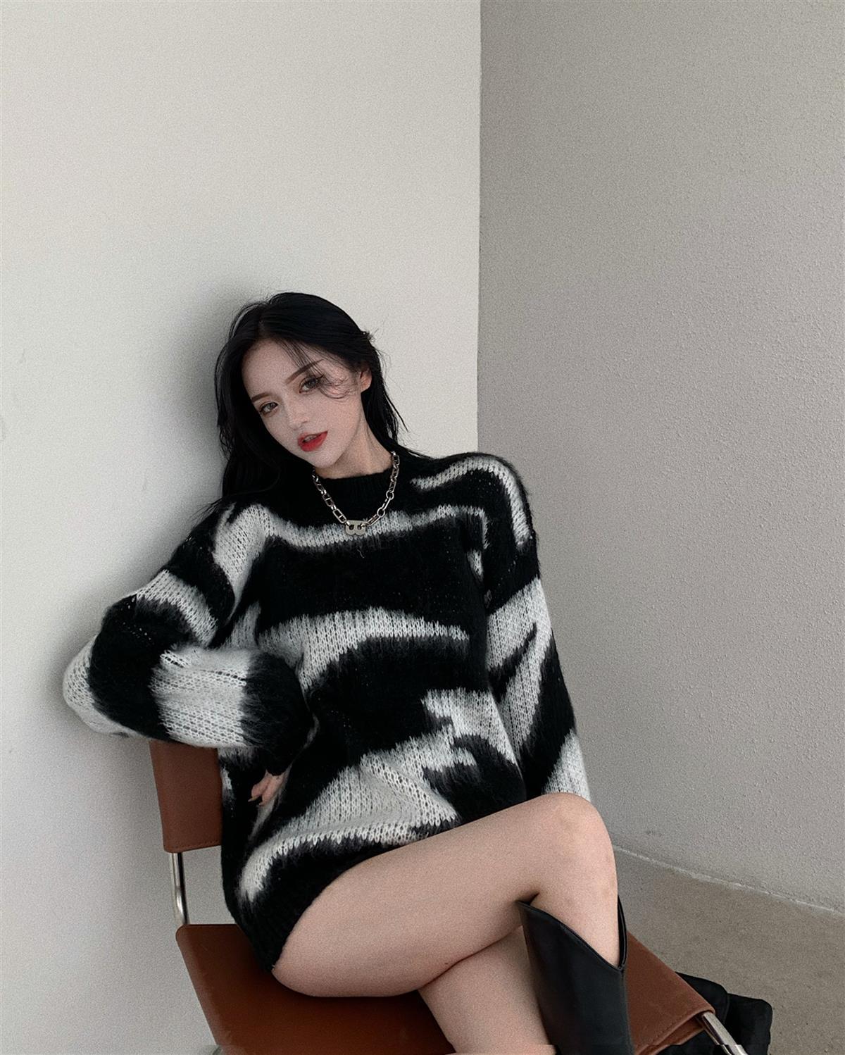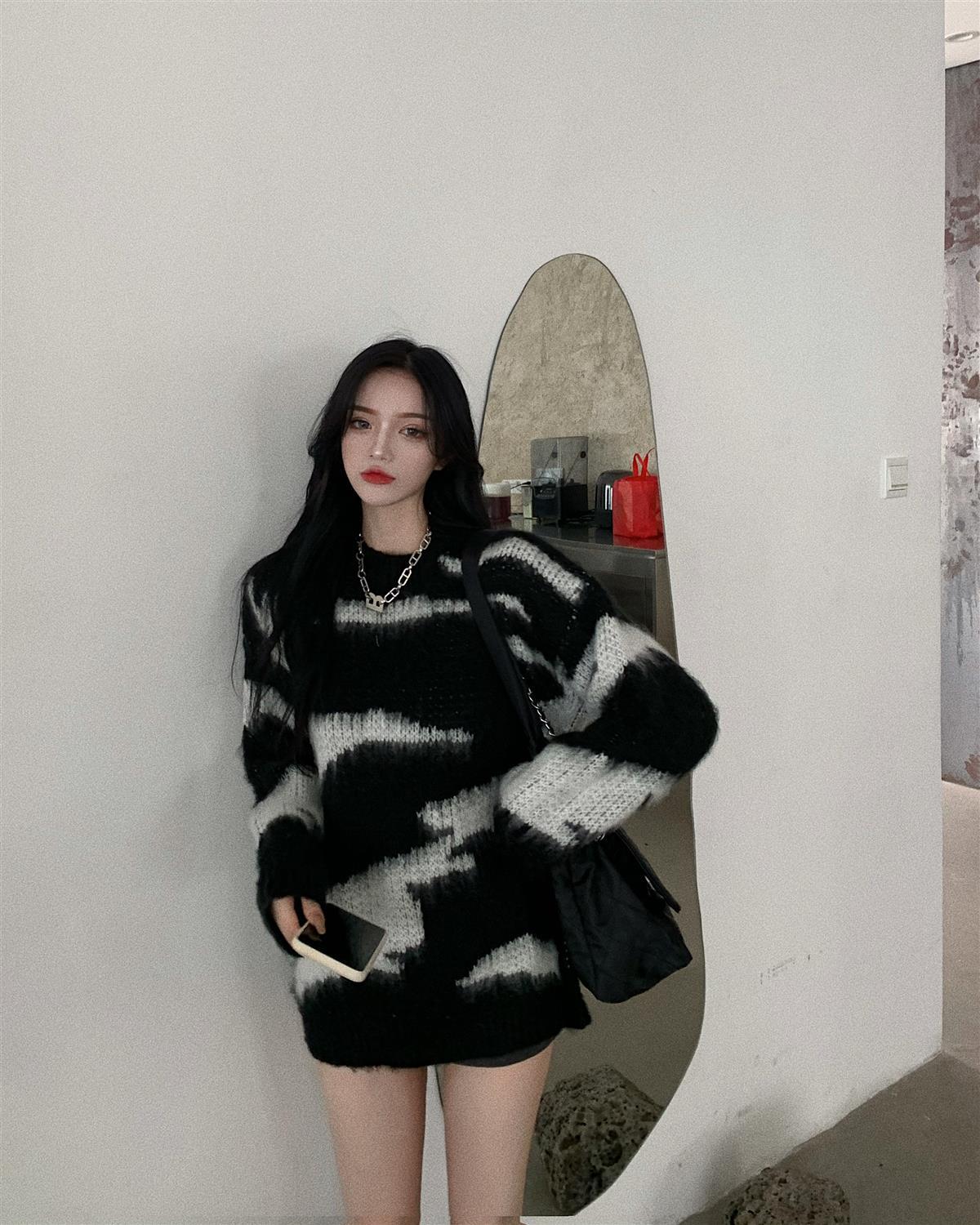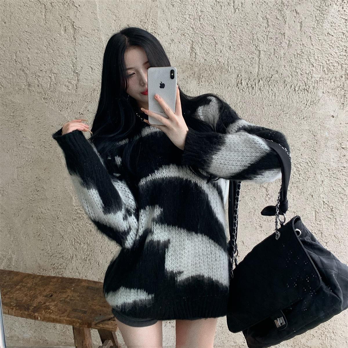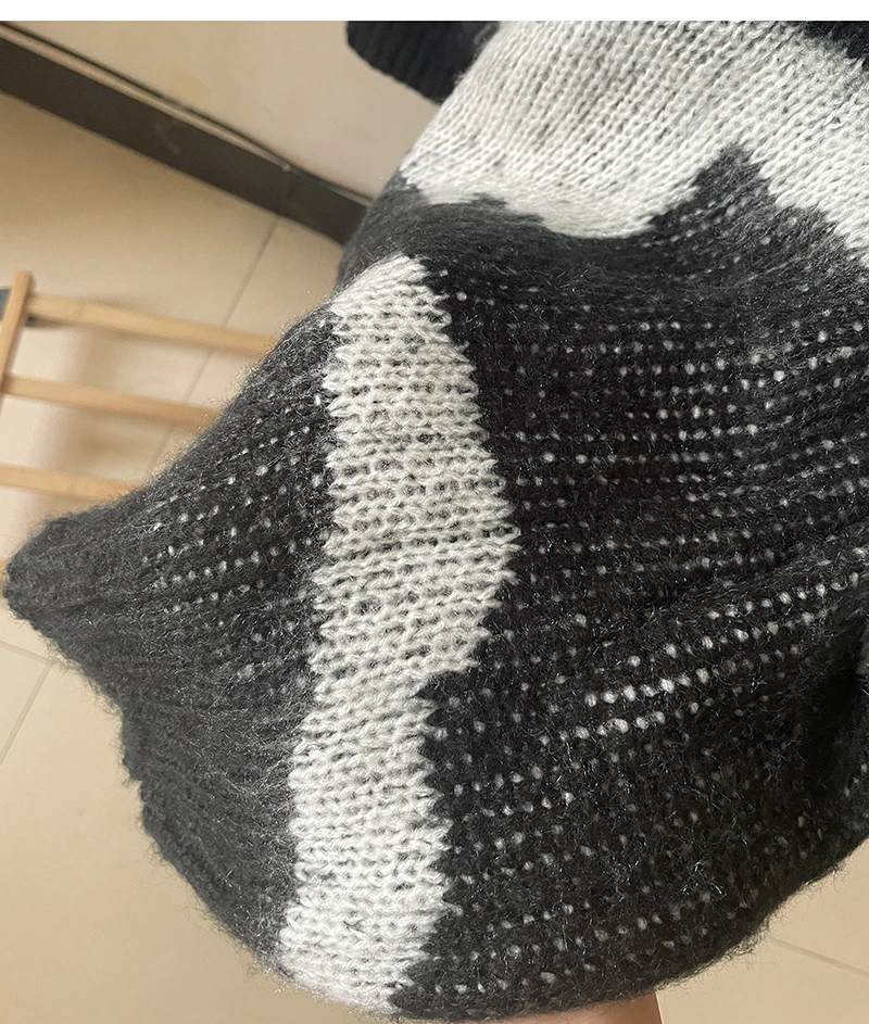 Женский вязаный свитер жаккардовый пуловер оверсайз свободный винтажный