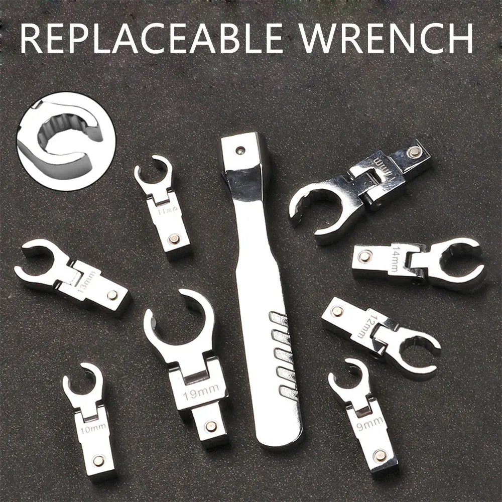 Сменная конструкция головки: Нажмите кнопку, и вы можете изменить характеристики гаечного ключа, который вам нужен, прост в эксплуатации и прост в установке, удобен и красив.