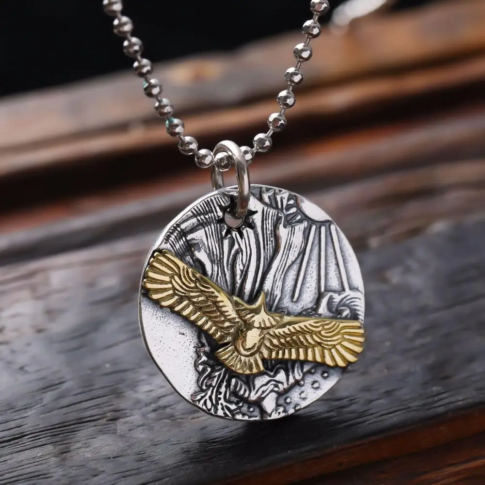 USD 2,69Винтажный дизайн серебряный круглый золотой Орел металлический кулон Мужская мода панк ожерелье...Купить сейчас